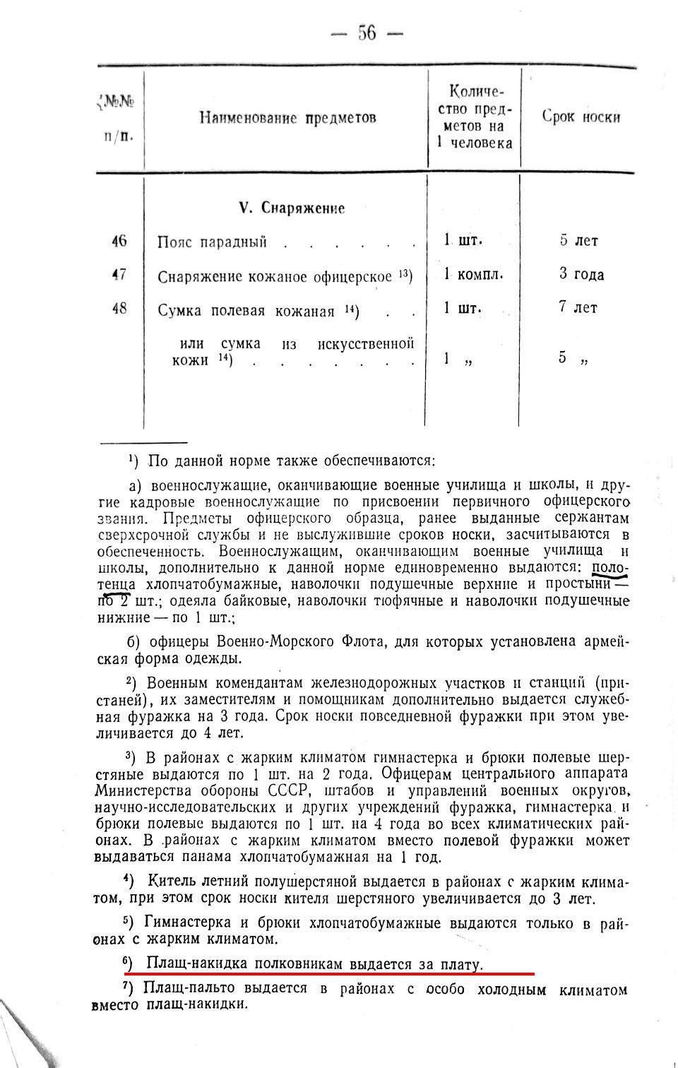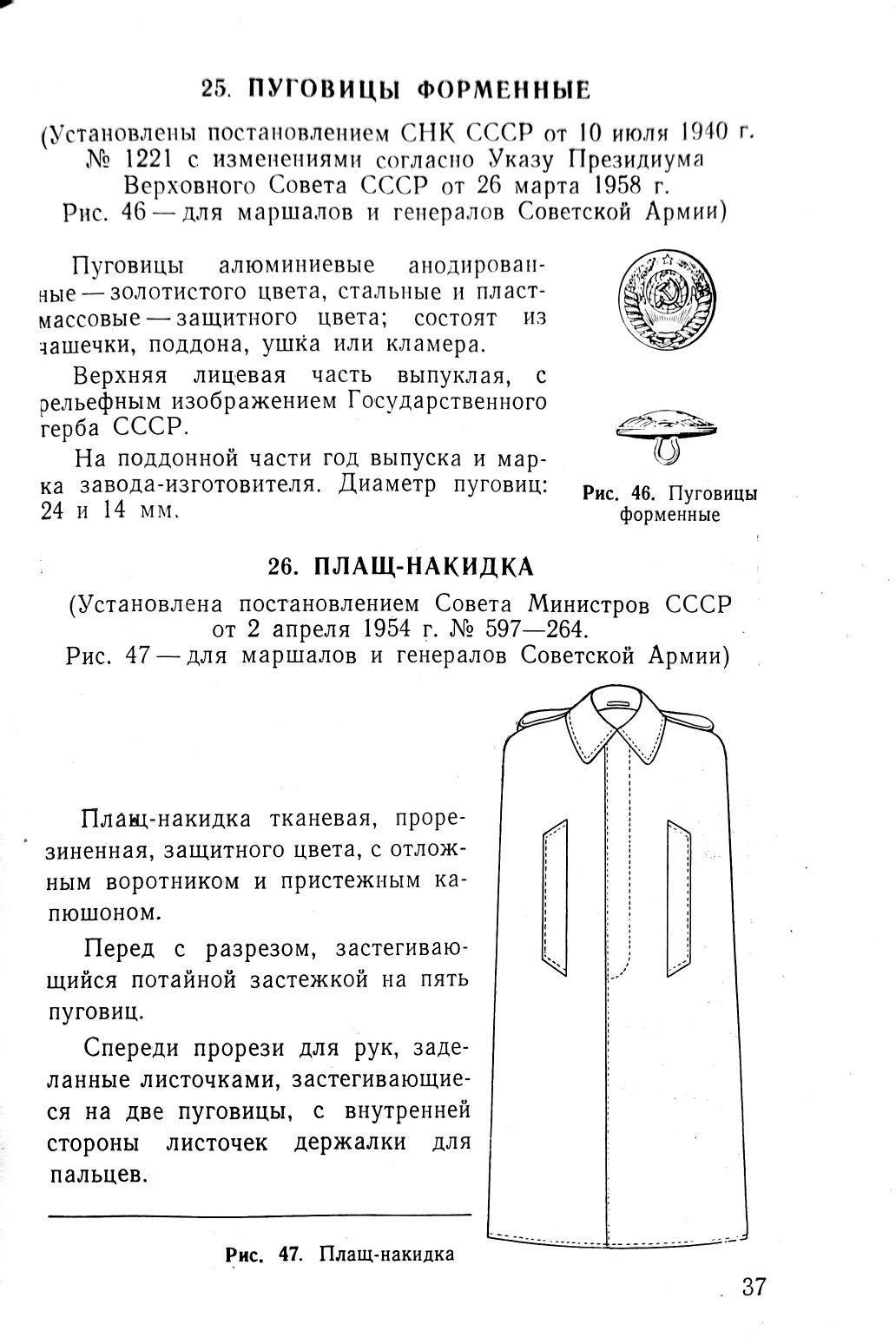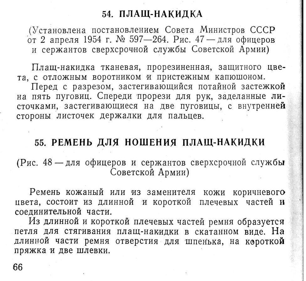 В 1959 году, приказ Министра обороны СССР № 51 «Положение о снабжении вещевым имуществом СА И ВМФ и норм снабжения вещевым имуществом на мирное время», подтверждает необходимость оплаты за плащ-накидки.