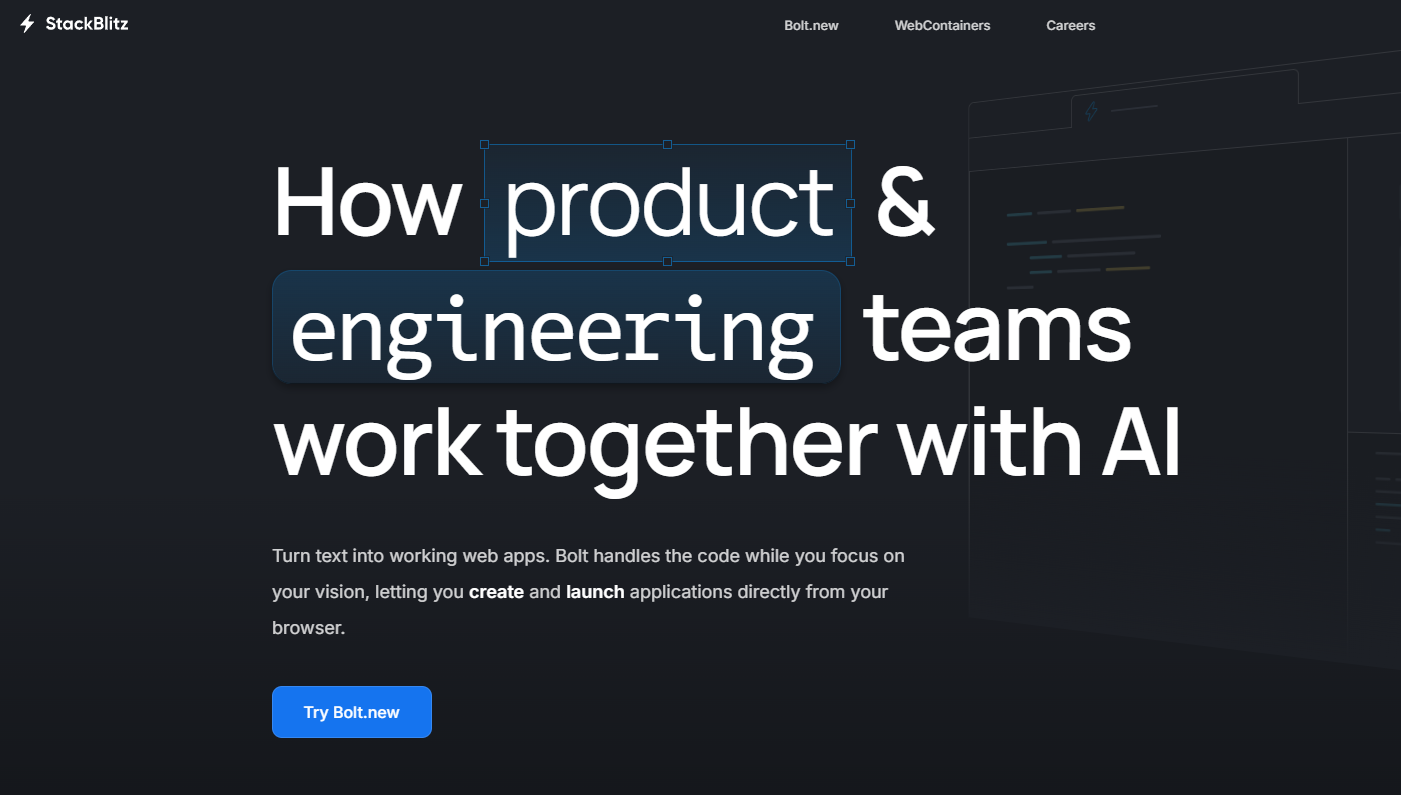 Недавно я открыл для себя сервис от StackBlitz под названием Bolt. Представьте: вы описываете идею, загружаете картинки, а нейросеть пишет вам чистый, красивый код работающего сайта. И это не просто статичная визитка из 90-х с вашей фотографией на пол-экрана!