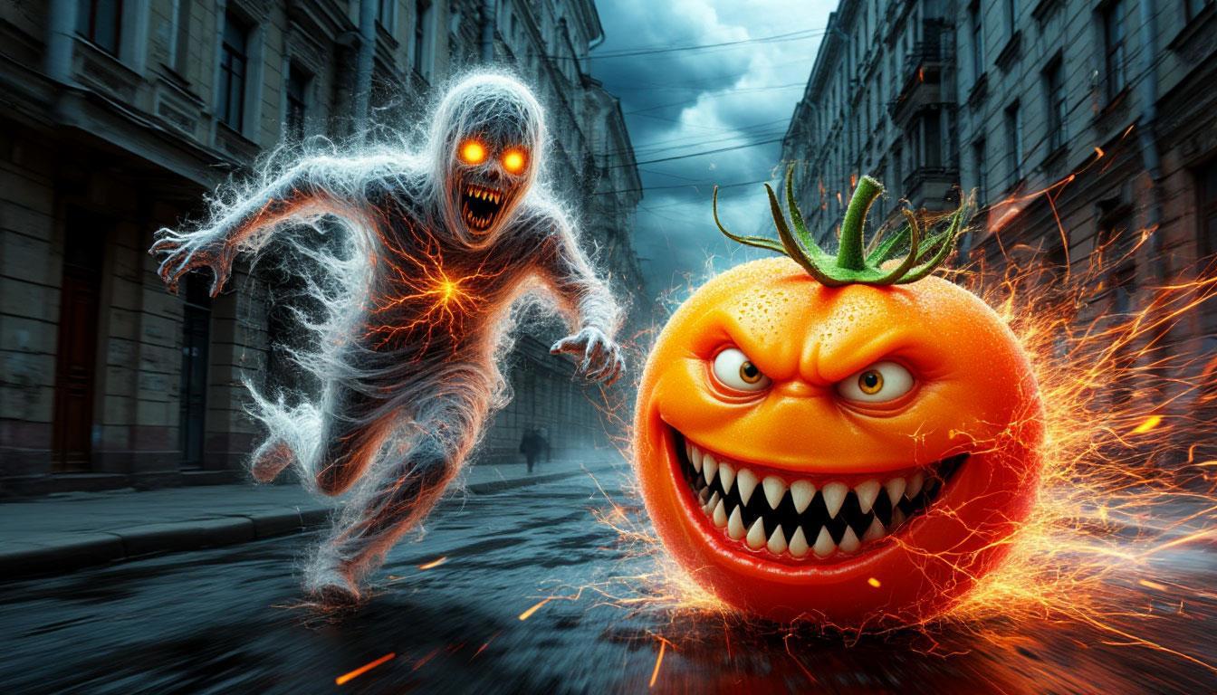 Далее картинка по циклу о юном некроманте. Хотя Поми не получился, но хищный помидор и мумия вполне. "Еда, еда, еда, из нежити еда".