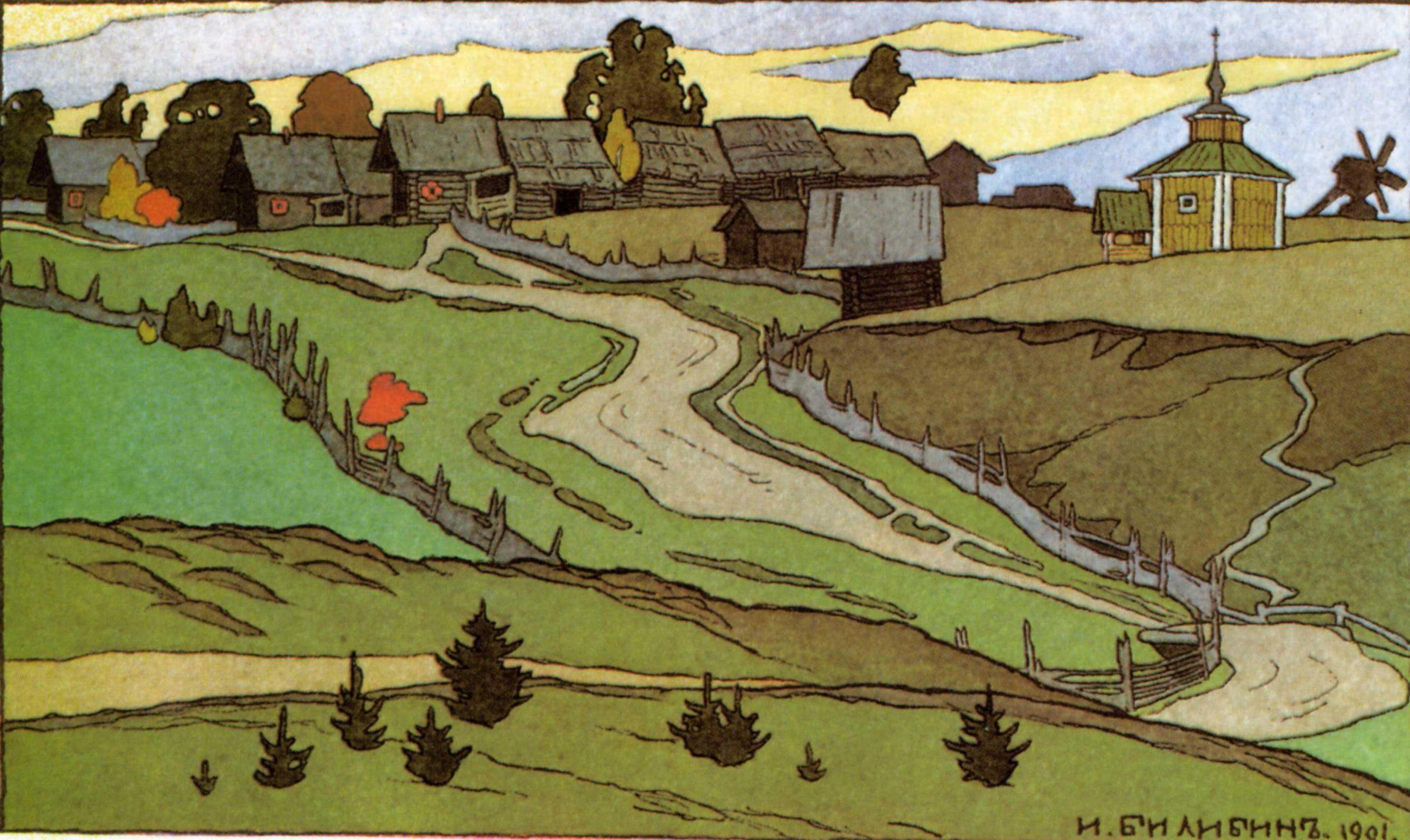Информация о деревне впервые попалась нам в книге о художнике Иване Билибине. По воспоминаниям современников, он однажды воскликнул после просмотра картины Васнецова «Богатыри»: