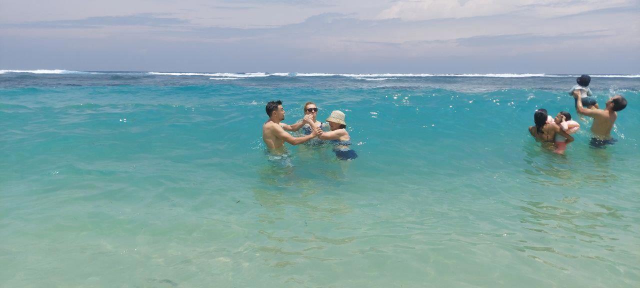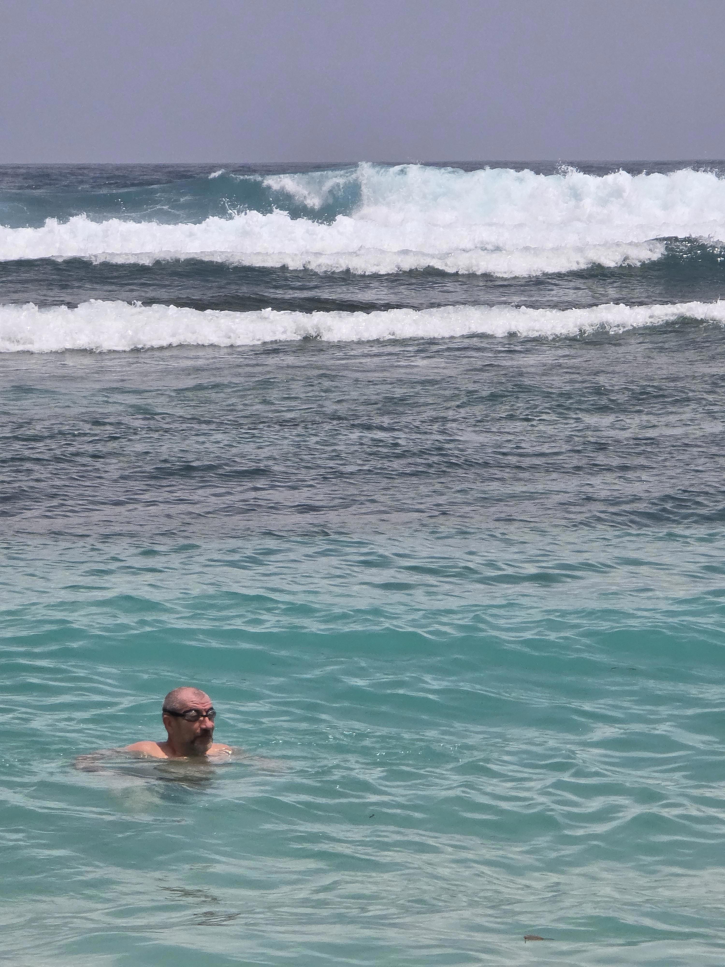 В общем не смотря на жуткую утомлённость было просто восхитительно. Солнце, лазурная вода океана, песок, развитая инфраструктура, т.е. душевые на берегу, туалет, зонтики, шезлонги под ними, правда за отдельную плату. Ну и привет от солнца, поджарил шею, плечи, руки.