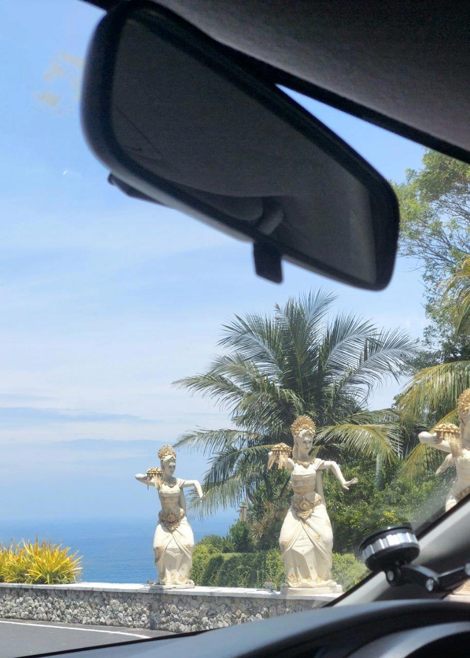 Приветствую посетителей вдоль дороги выстроились танцующие статуи женщин.
