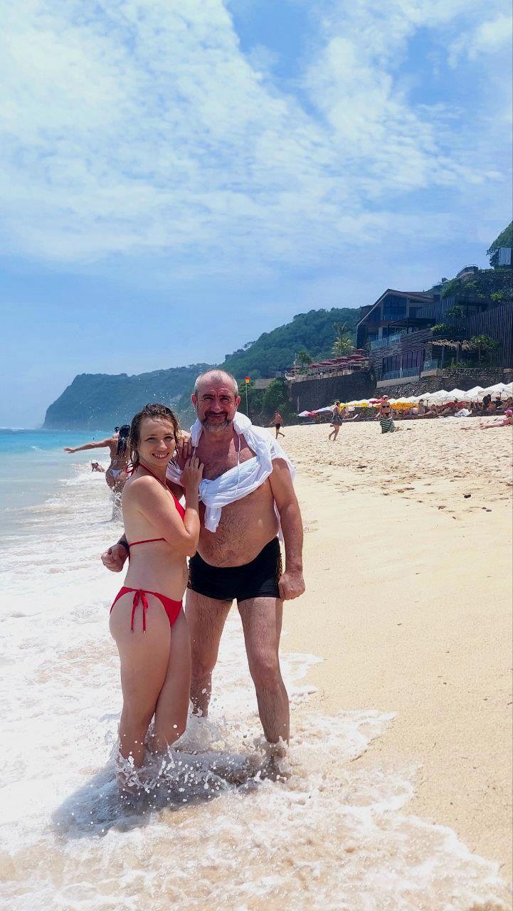 Добравшись до берега, дальше катался в своё удовольствие на волнах. Утомившись кое как выбрался на берег. В это время к воде подошла Наташа со своей мамой, под руку заводя в море. Я поспешил за смартфоном, для запечатления момента, зачем-то при этом нацепив поясной карман. В результате большая волна, я под ней, меня вытаскивает зять. Вот он последний кадр с накатывающей волной.
