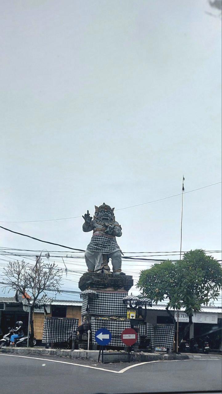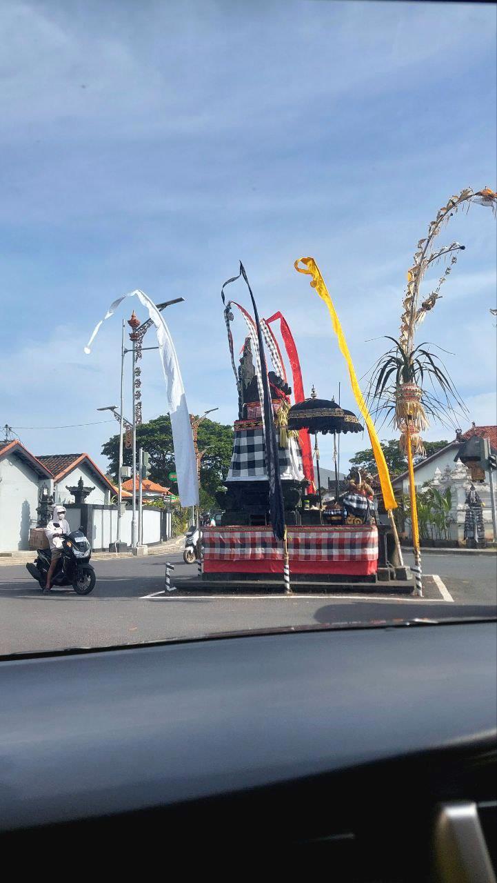 Надо отметить, что к фигурам балийцы относиться ответственно, возле них постоянные подношения, нижняя часть фигур замотана в клетчатые материалы, а сей час в преддверии местного Нового года украшены цветами и разукрашенными шестами.