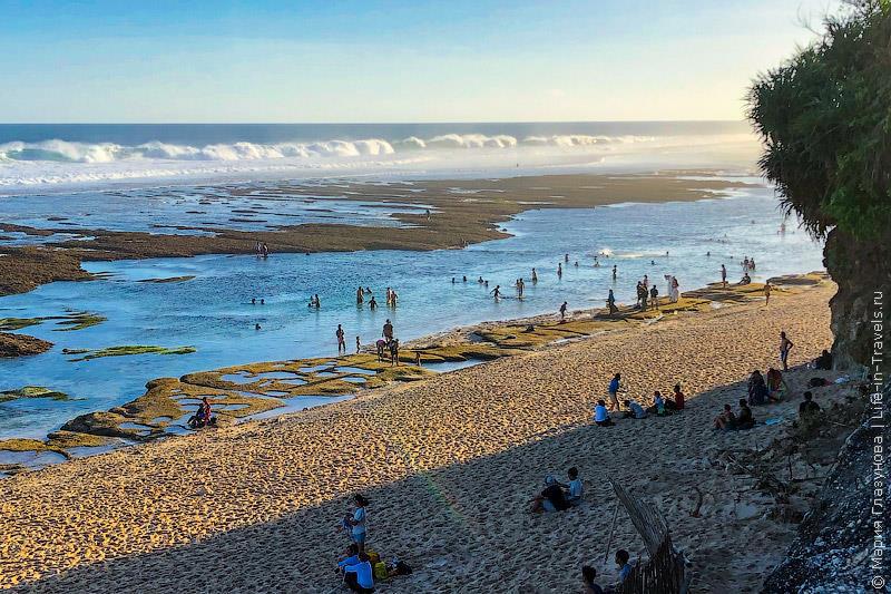 Пляж, крупнозернистый песок, возможно поэтому почти нет мути, плыву размеренно работая руками, дно будто рукой подать, но нет, попытался встать ушёл с руками. кстати нам повезло ну или мне, был прилив, высокие просто шекарные волны, всё как я люблю. Нашёл в инете фото вовремя отлива.