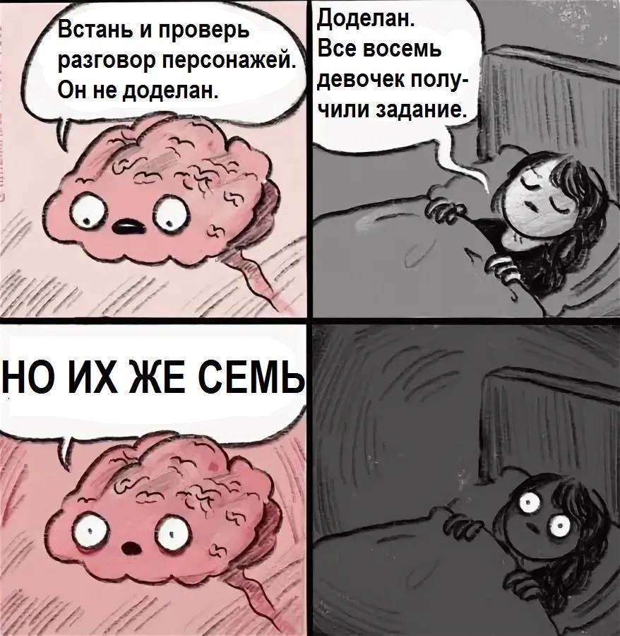 Вот показательный пример с "Чернотой". Придумал микросюжет и теперь либо должен дописать его до конца (СЕЙЧАС ИЛИ НИКОГДА), либо каждый день урывками буду вспоминать, что там мозг понапридумывал. И хорошо, если вспомню. Прям хоть вообще не придумывай ничего вечером, чтобы оставить творческую энергию на утро. Как говорится, утро вечера мудренее.
