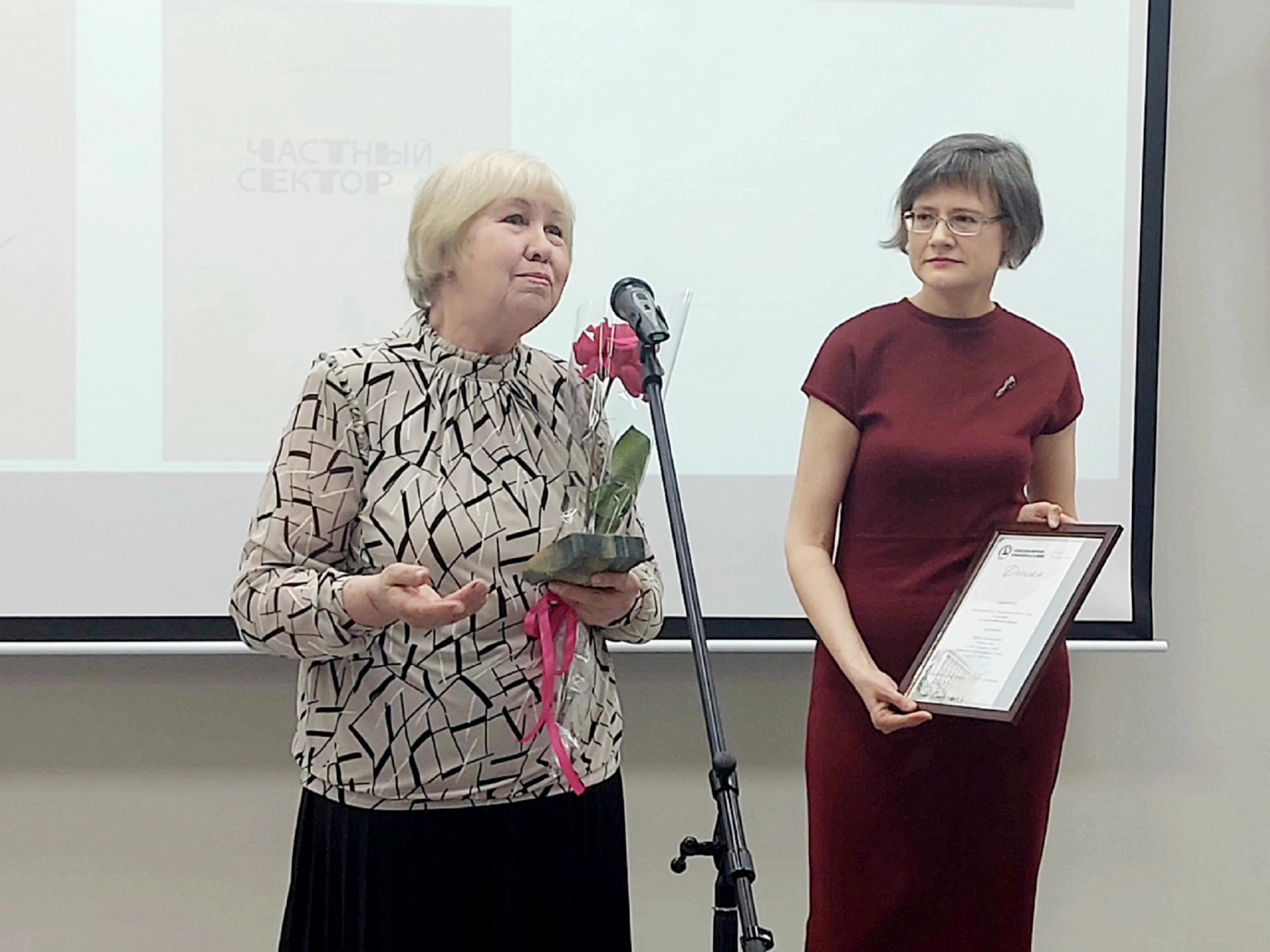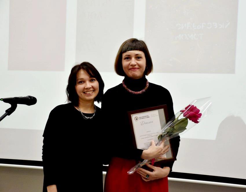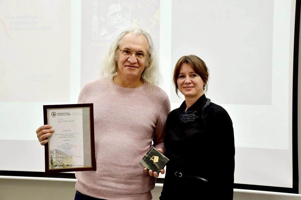 Сергей Тепляков получил награду из рук министра культуры Алтайского края Елены Безруковой