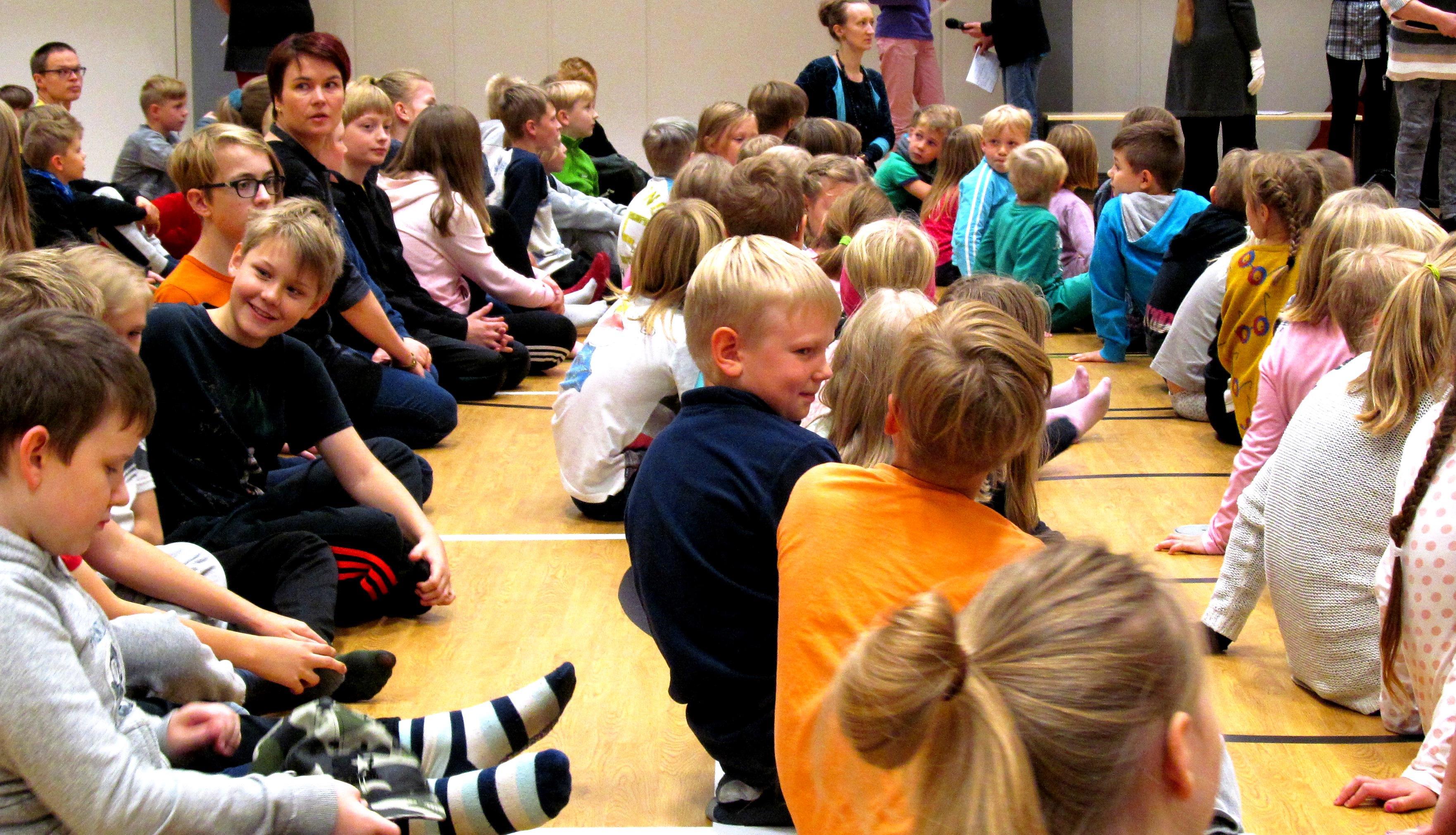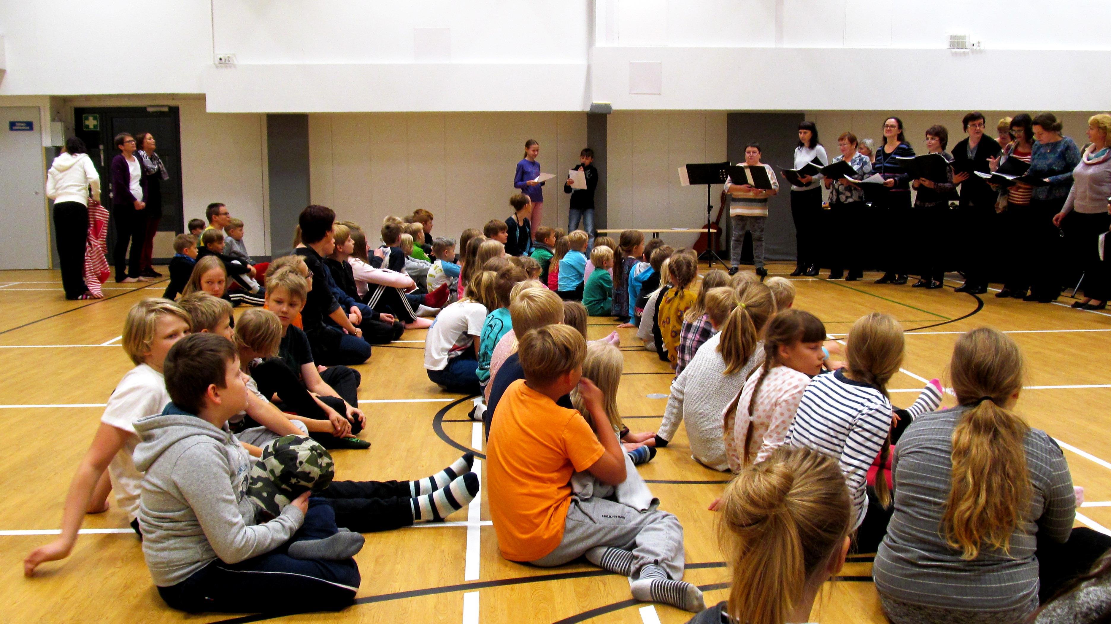 А потом всех детей собрали спортзале – наши выступали! Да, никакой сменки в школе нету – дети оставляют обувь у порога и ходят просто в носках) И многие учителя – тоже)))