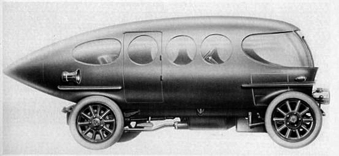 Маршрутка в представлении начала 20-х годов - скорость, стремительные формы и клаксон сзади