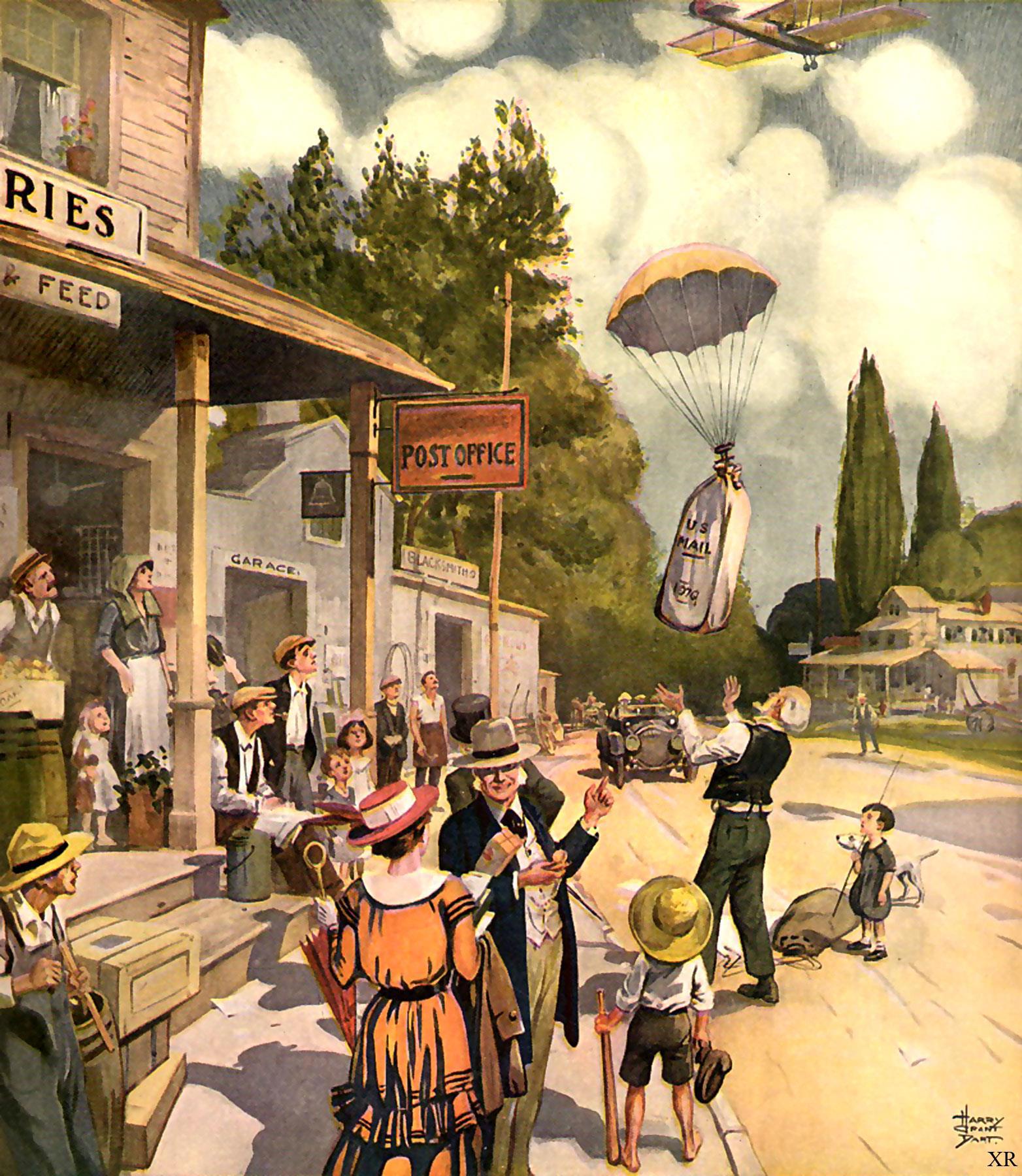 В США так нередко в небольшие городки доставляли срочную почту - сбрасывали с аэропланов. И не только в США.