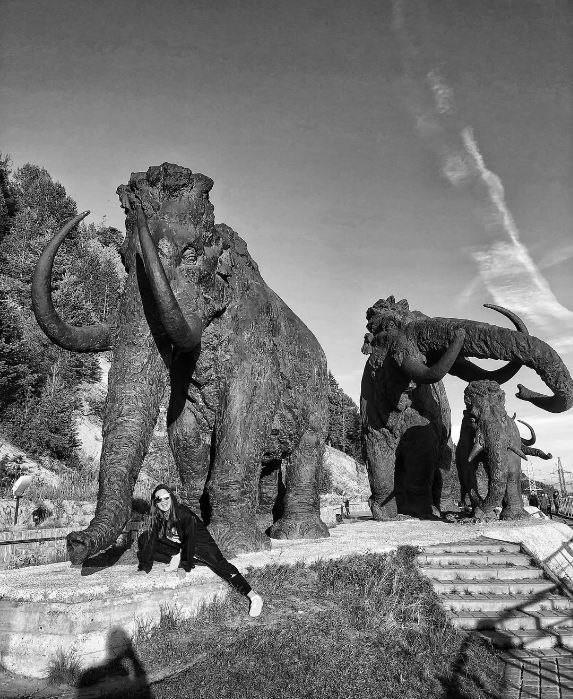 Но Сибирь… Это любовь с первого взгляда. Казалось, ещё немного, и скульптуры мамонтов оживут… Я как ребёнок радовалась и прыгала среди огромных статуй. Гладила бронзовую поверхность каждого животного эпохи плейстоцена и представляла этот древний удивительный мир.