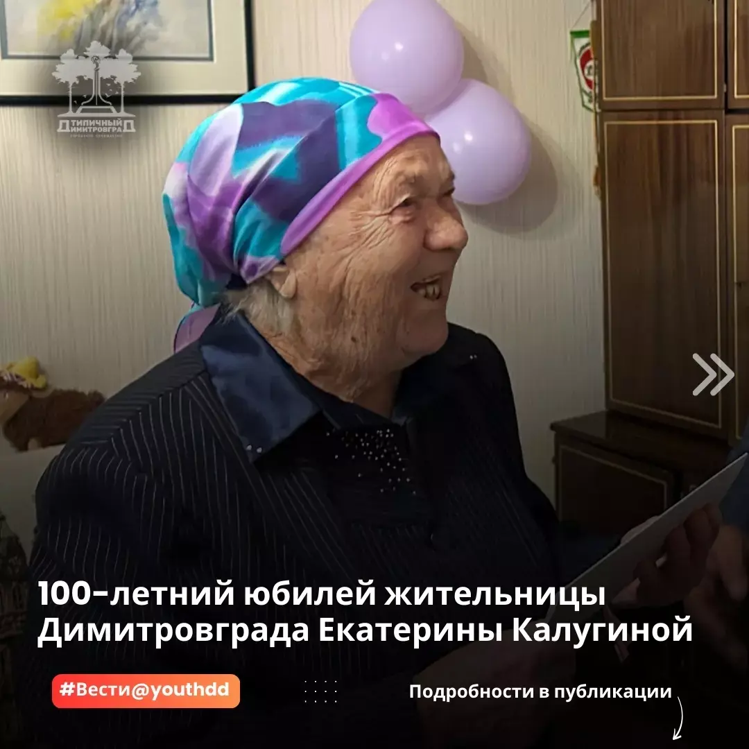 Сегодня 100-летний юбилей отмечает жительница Димитровграда Екатерина Петровна Калугина. Глава города Сергей Сандрюков поздравил именинницу, вручив ей медаль "80 лет Победы в Великой Отечественной войне".