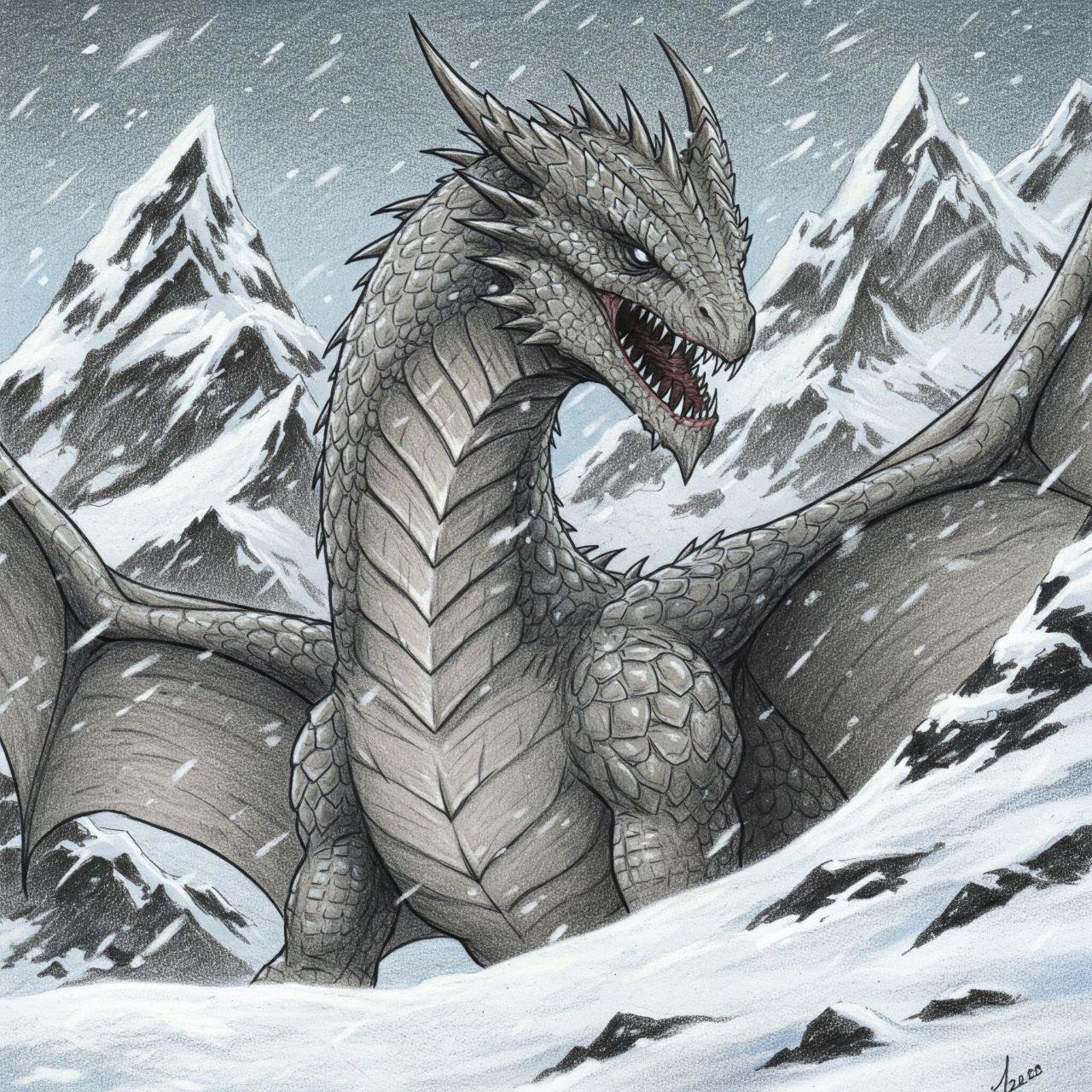 Истинная ипостась: серо-чёрный окрас, пёстрый, чтобы сливаться со скалами. Глаза серые. Размер чуть меньше среднего.