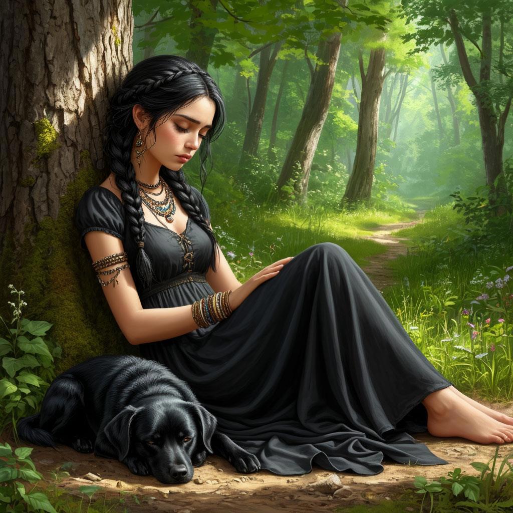 Ева чуть покачнулась и ухватилась за стоящую рядом худую березку. Сердце заполошно билось, каждый удар отзывался острой болью. Золотые браслеты ярко горели на запястьях и обжигали кожу. Черный пес уже был рядом, крутился у ног хозяйки и тихо скулил. Ева безуспешно пыталась унять болезненное сердцебиение, пока медленно не опустилась в мягкую траву. У нее не оставалось сил даже отнять руку от деревца. Пес ткнулся носом ей в щеку, затем спрятал морду на груди и затих.