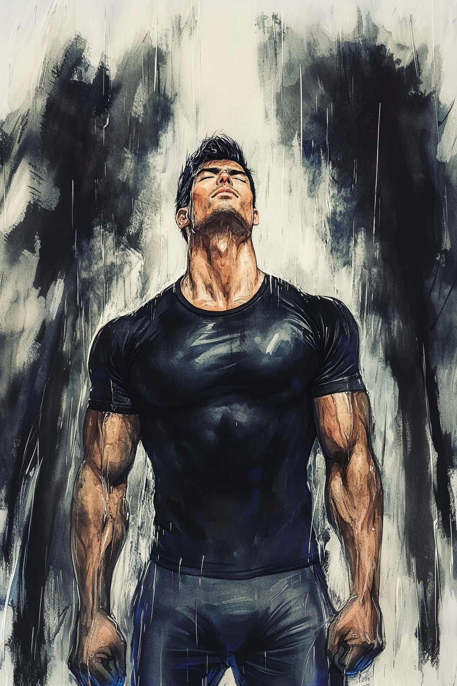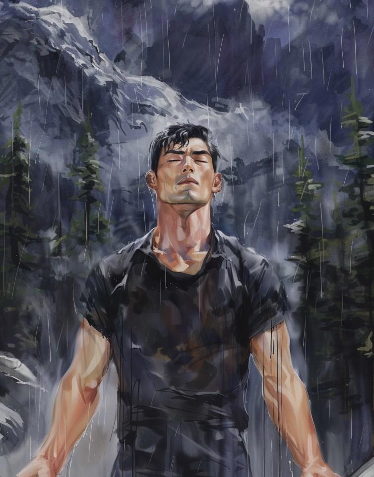 Расправленные плечи. Расслабленные руки. Тугие струи хлещут по закрытым глазам. Будто бы дождь может смыть накопившееся напряжение и тревоги Кевина, резонирующие, похоже, с эмоциями самого Вернона.