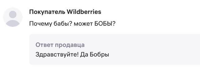 На Вайлдберриз продаются бобы. Видимо, сперва заголовок карточки был с ошибкой, через А. В вопросах под товаром получился прекрасный диалог.