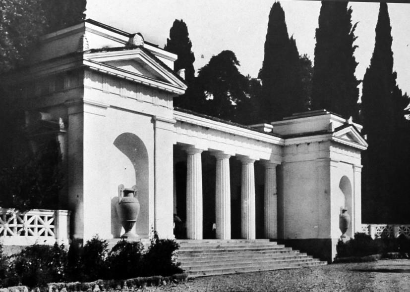 Сперва входом в парк служила именно эта колоннада. Теперь, в парк попадают через знаменитые арки.