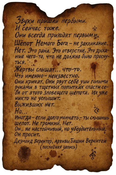 Автор: Денис БильМанускрипт найден в пепле у подножия Башни Верентей.