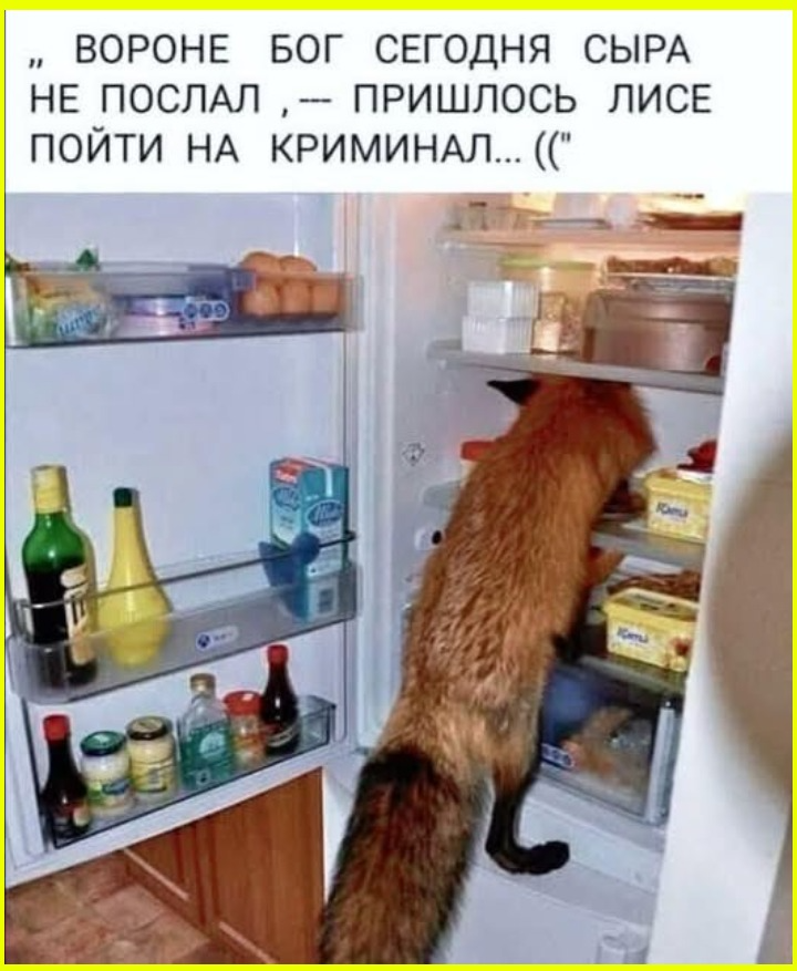 Совсем лисы распоясались, уже не по курятникам, а по холодильникам шаряться
