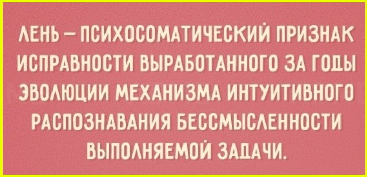 Вот, теперь так всем буду говорить, а то - лентяй, лентяй! Это эволюция!