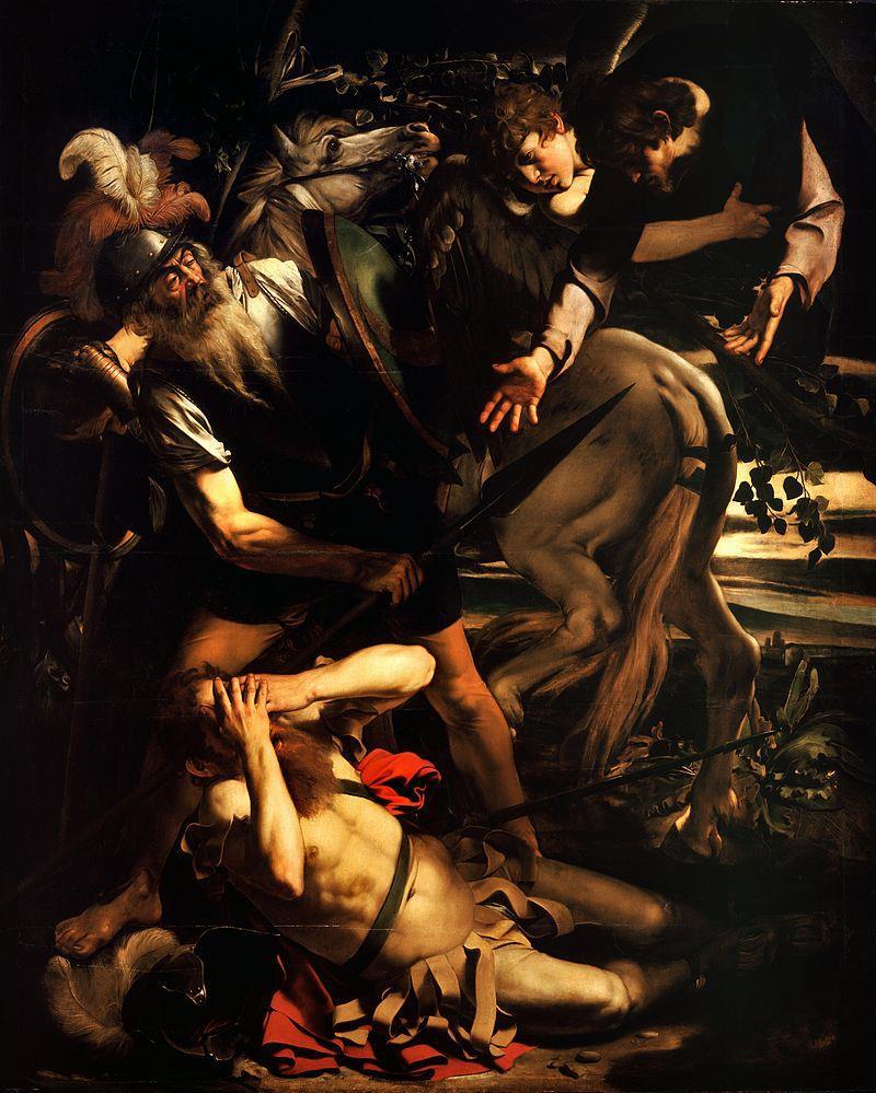 Обыкновенно этот сюжет - явление Христа своему гонителю Савлу - обыгрывался с акцентом на сиянии и божественной природе Христа. Караваджо же сместил акценты на личную драму, которую переживает Савл. Христос не явился ему в облаке сияющего света - более того, Он "теряется" в темной композиции картины, оставляя Савлу шанс его "не заметить". Мне кажется, это очень соответствует духу христианства. Господь не навязывает человеку Своего присутствия; человек всегда имеет право не увидеть Господа, не узнать его, закрыть глаза. Именно это обыгрывает Караваджо, что делает образ апостола Павла более глубоким. Что такого в прямом чуде, когда тебе явился в сиянии света Бог, и ты уверен в этом знамении? Другое дело - терзающийся сомнениями Савл на картине Караваджо. У него нет стопроцентных доказательств того, что Христос - Сын Божий. Он может отвергнуть Его.