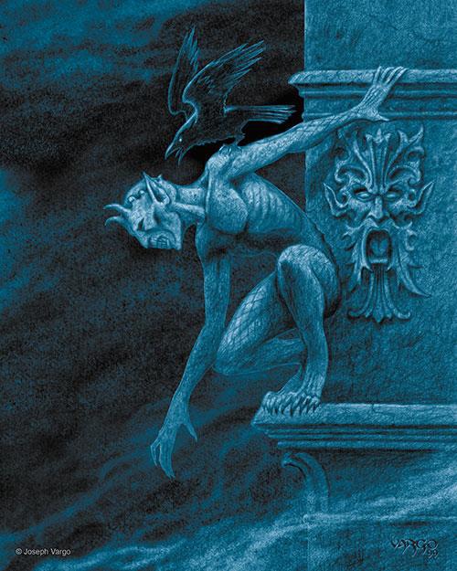 Работа сильно отличается на фоне всего остального цикла, в которой гаргульи изображены классическими крылатыми чудовищами, пугающими и злобными. Гаргулья на этом полотне вызывает жалость тем отчаянием, которым наполнена ее измученная фигура. Кроме того, ворон явно доминирует над ней, заставляя видеть в ней жертву.