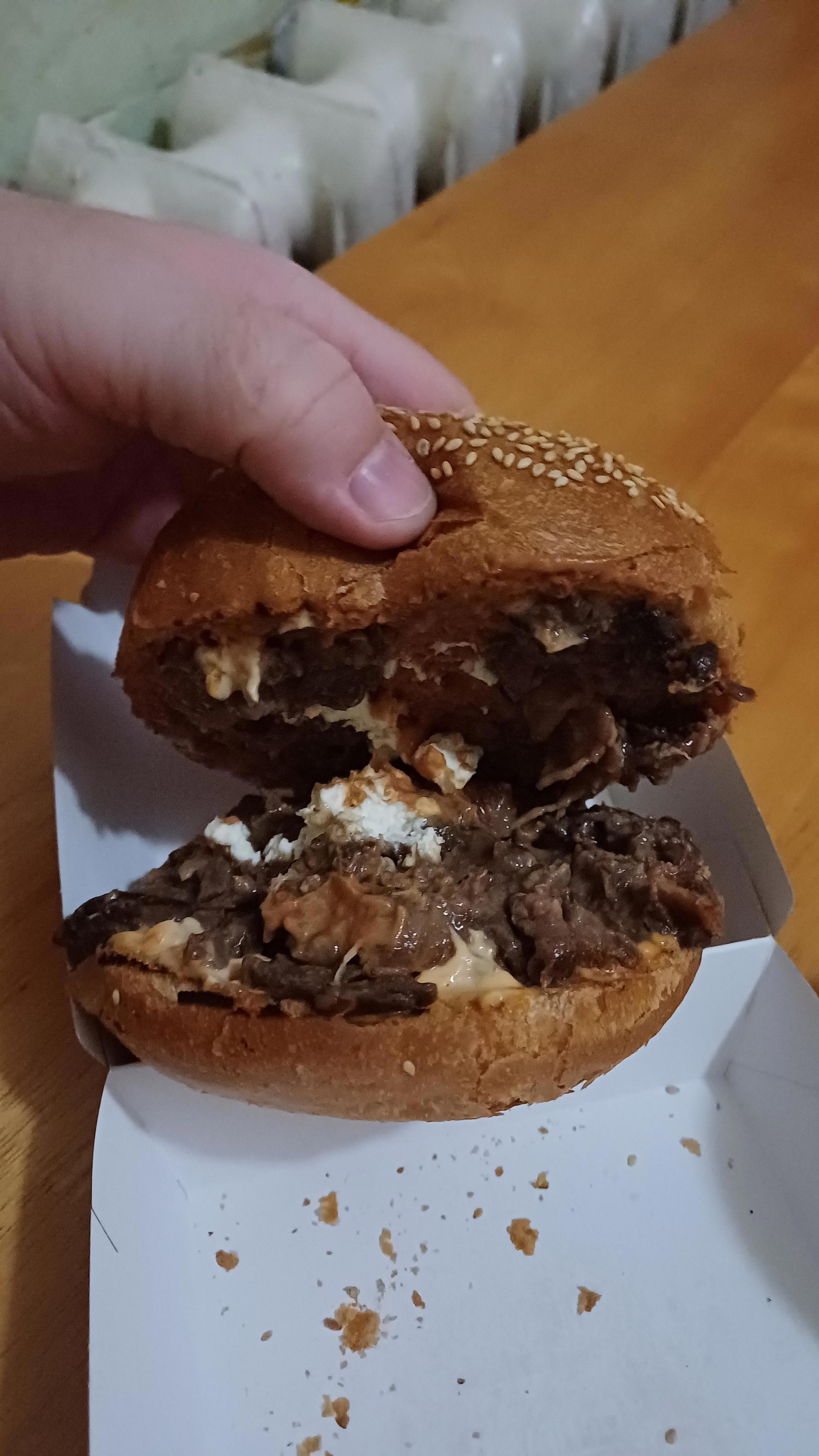 ...данный бургер с мясом оленя. "Зашёл" на "ура". Очень вкусно, даром что фастфуд.