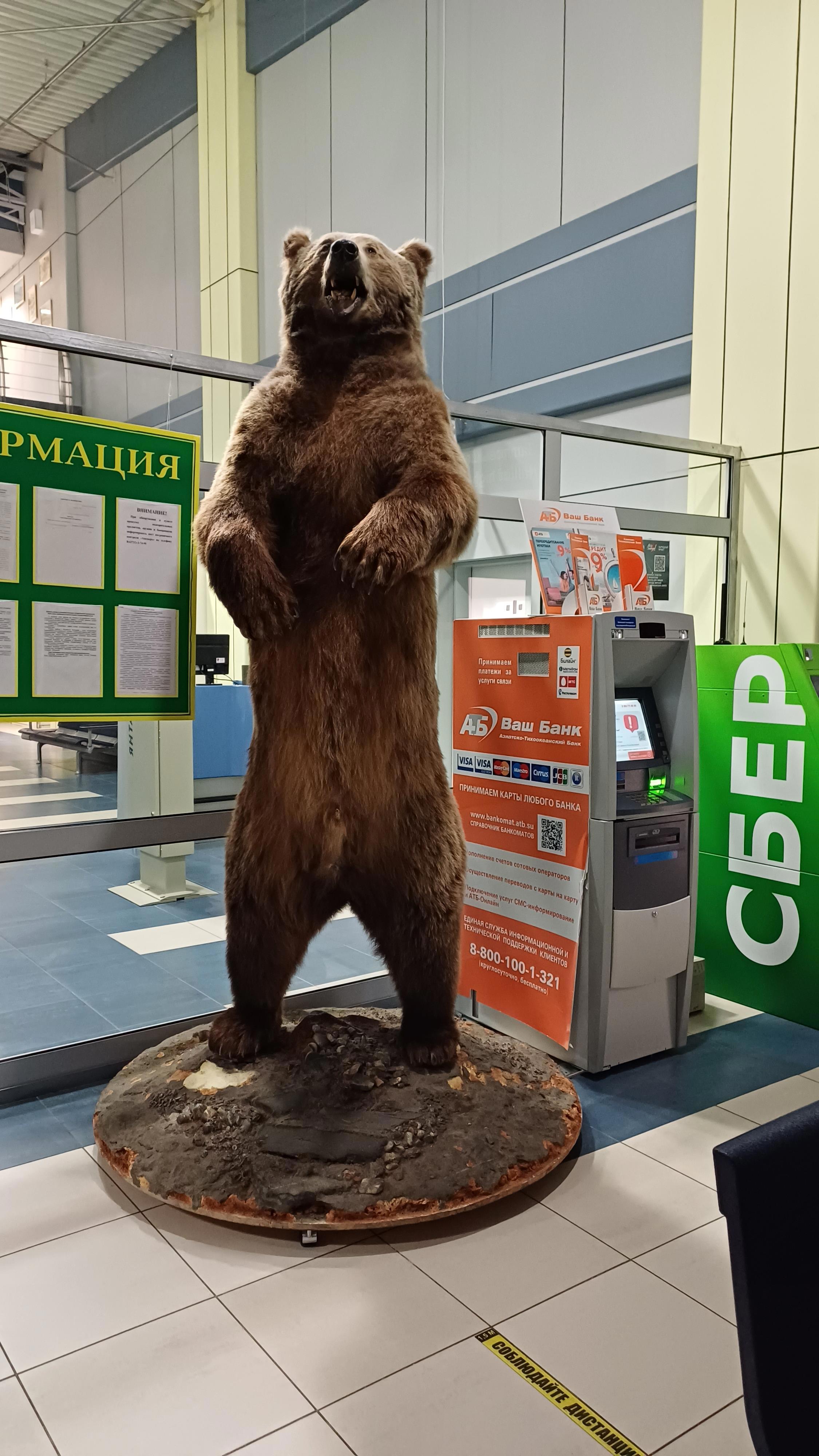 По прилёту вас встречает маленький, но уютный аэропорт Анадыря, он же Угольный, тем не менее, имеющий телетрап для приёма и отправки пассажиров. Покой воздушной гавани оберегает вот этот "хозяин тайги", которому плевать на бытующее среди обывателей мнение, что на севере живут только его белые сородичи...