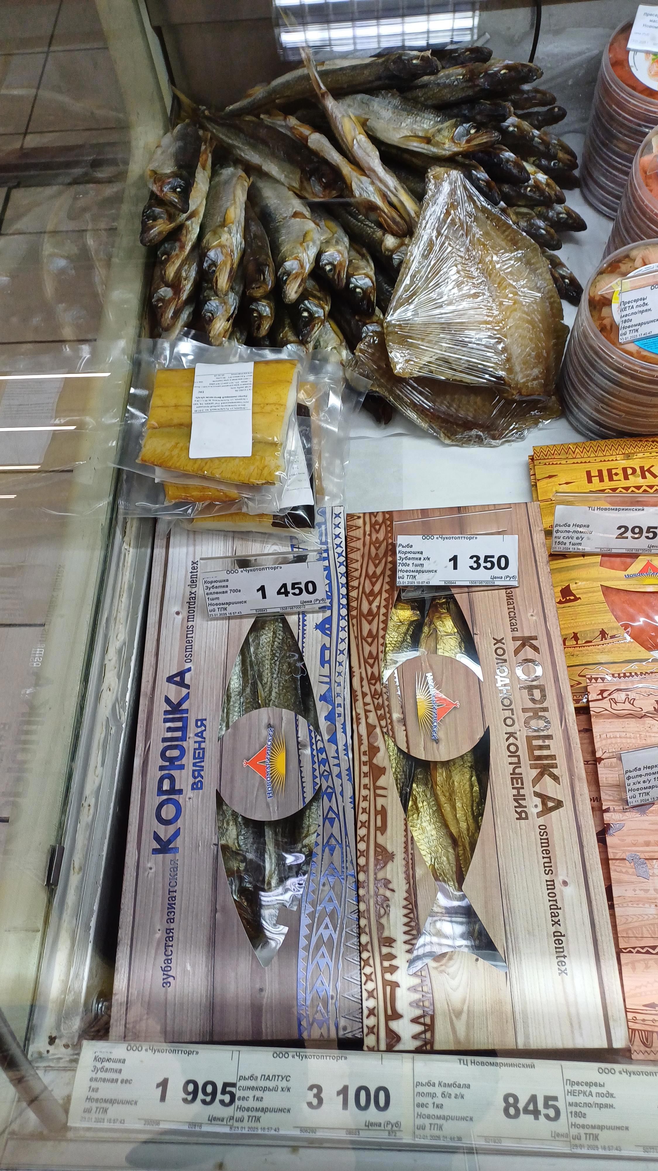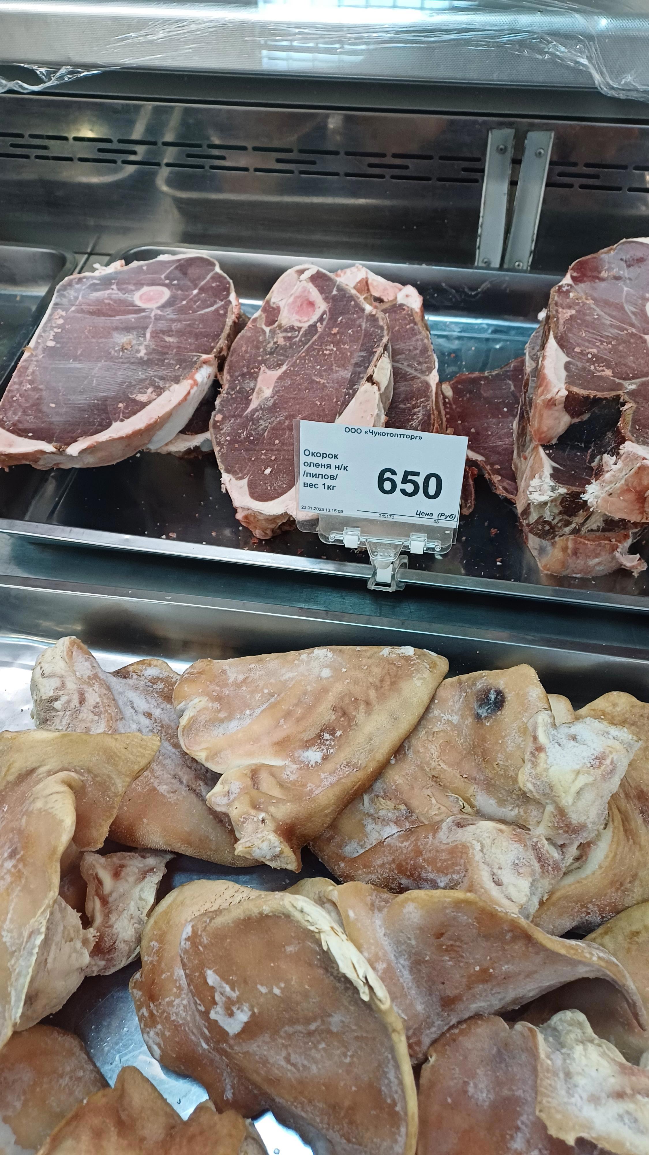 Из местных продуктов в магазинах можно приобрести пиво, оленину в разных видах (копчёную, вяленую, свежую, замороженную, в виде колбасы, а также тушёнку из оленины, каши консервированные с олениной, пельмени, котлеты), рыбу (корюшка, нерка, кета, палтус и т.д). Ценник, конечно, трудно назвать демократичным, но не забывайте про удалённость и общую суровость края...