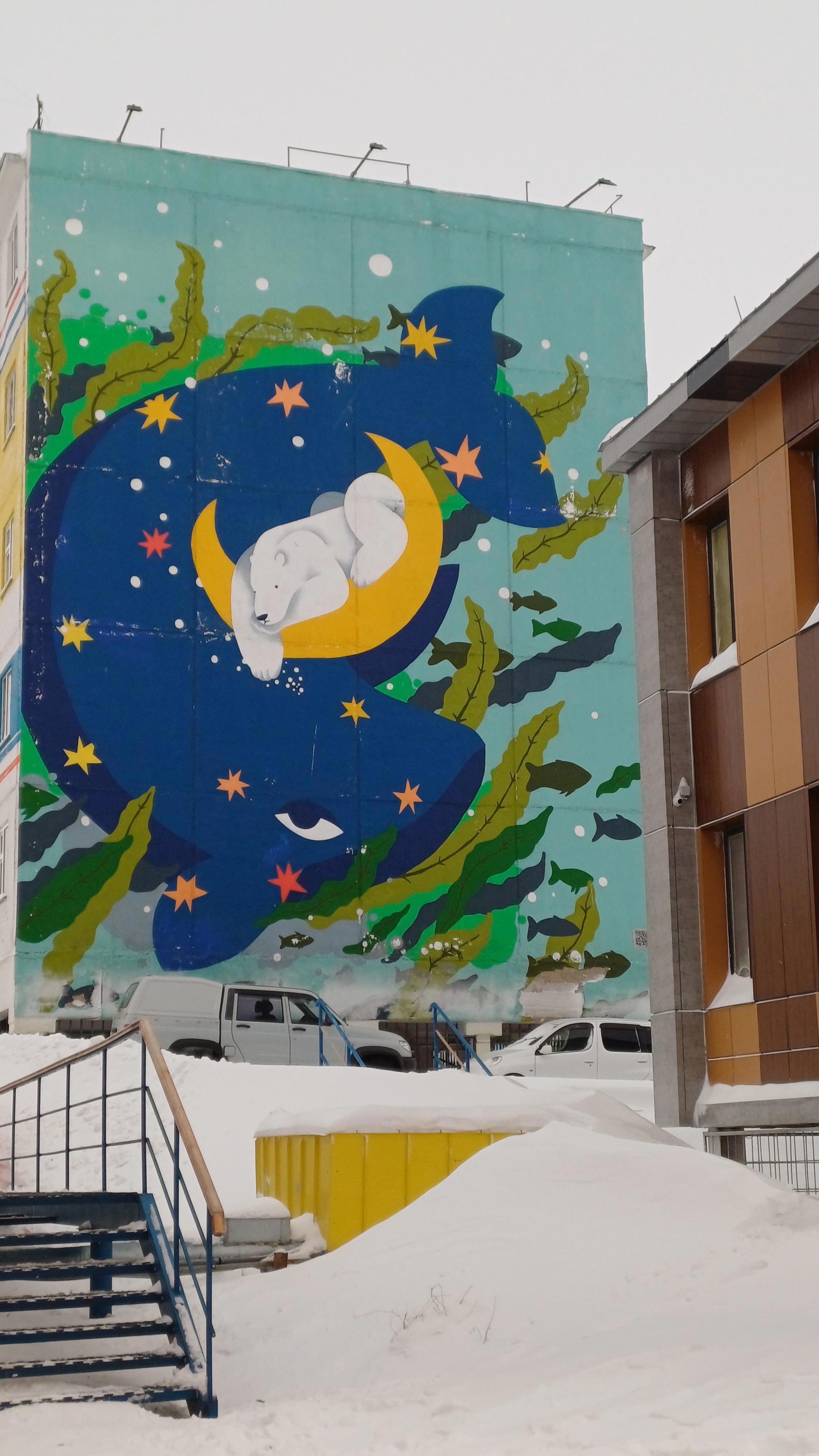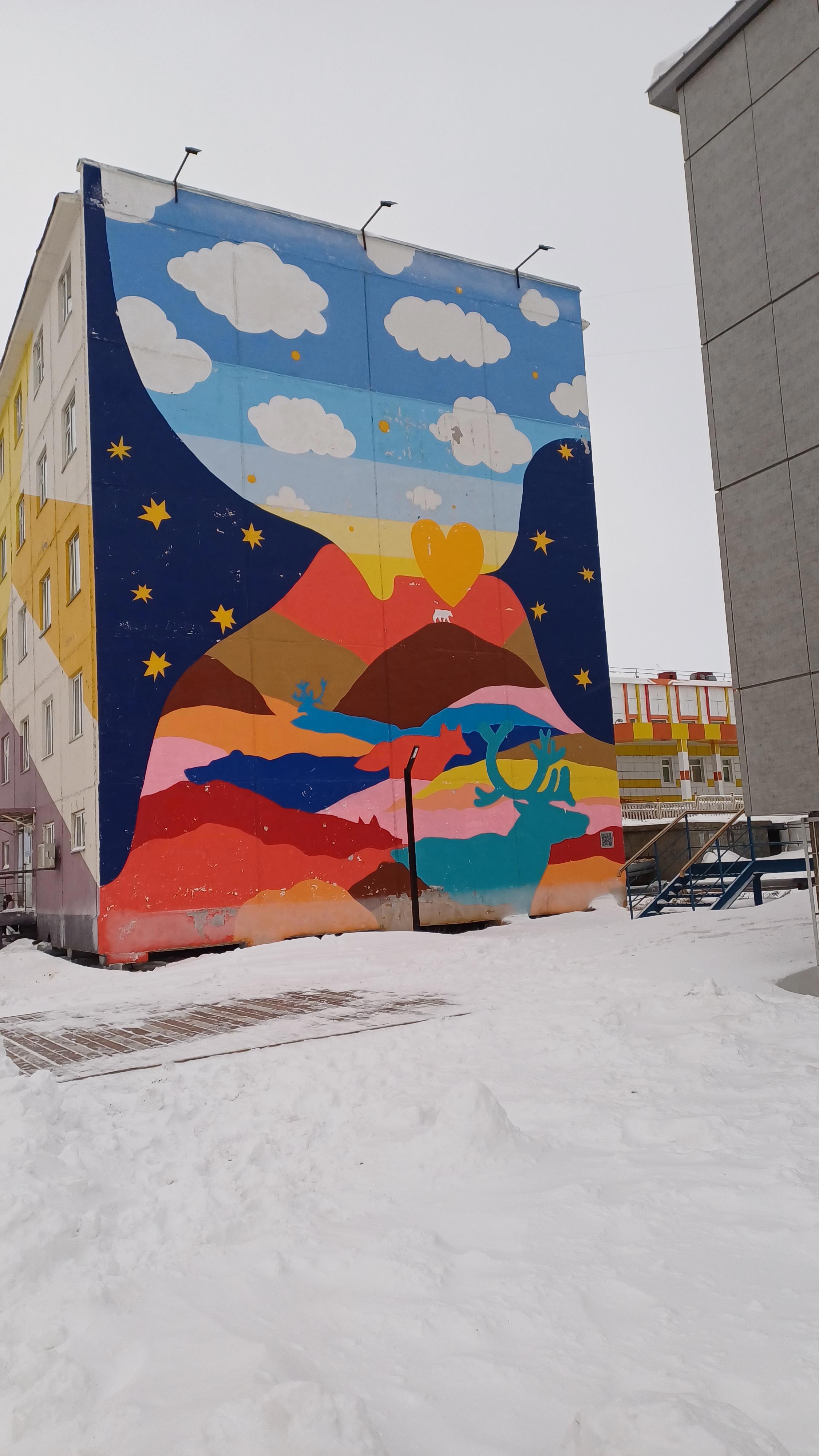 Все дома раскрашены в несколько цветов, а на торцевых стенах многих зданий выполнены муралы. Большую часть года на Чукотке лежит снег и разноцветные дома услаждают человеческий взор после бескрайней белизны (хотя чукчи и коренные народности Севера определяют больше десятка цветов и палитры снега, чуть ли не до 3х десятков).