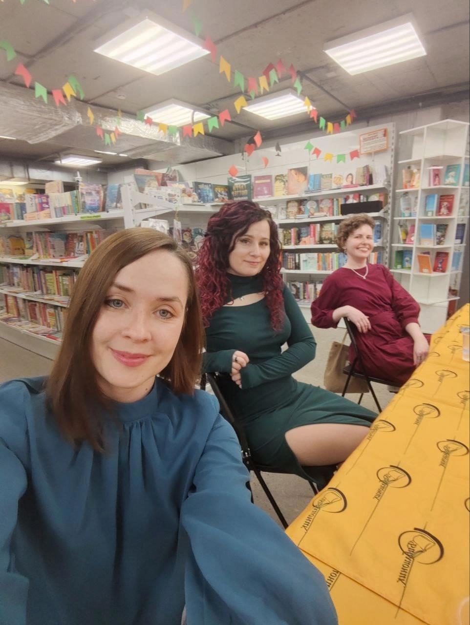 2) Замечательные авторы, Виктория Манн (на фото - с самой яркой улыбкой!) и Алекс Джун (создательница фото), с которыми я очень рада была познакомиться вживую, и книги которых читала с большим удовольствием!