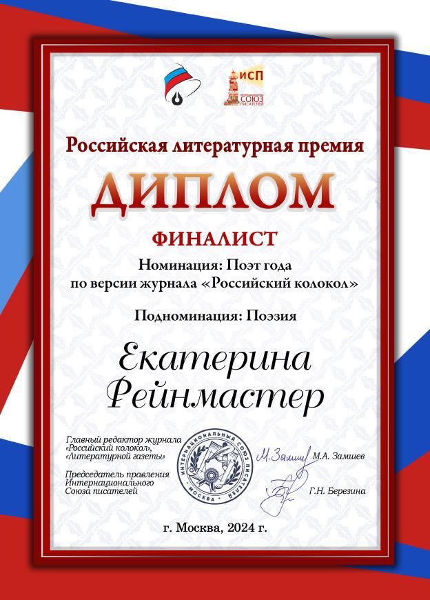 Некоторое время назад я получила письмо от Интернационального Союза писателей, в котором сообщалось, что опубликованные в «Российском колоколе» материалы номинированы членами жюри на участие в конкурсе «Российская литературная премия — 2024». Организаторы просили подтвердить получение материалов и, если у меня будет такое желание, поучаствовать в коммерческих проектах издательства. Разумеется, добровольно.
