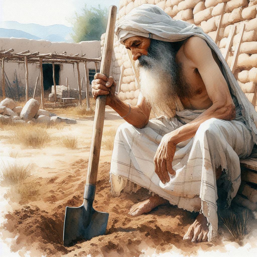 В обычное время этот маленький дом, очевидно, ничем не отличался от соседних. Но сейчас было похоже, что на его заднем дворе рылось стадо на редкость целеустремлённых свиней. Вся земля зияла глубокими неровными ямами, кучи земли превращали уютный дворик в подобие лабиринта. В один из холмиков был воткнут заступ с потемневшей от времени ручкой, на другом сидел жилистый седобородый мужчина в набедренной повязке и с постным видом доедал лепёшку. Пришелец недоверчиво оглядел его издалека, полез за пазуху и вытащил за верёвочку бляху с тонкой гравировкой. Некоторое время он переводил глаза с человека на круглую пластинку и обратно, затем пожал плечами, спрятал бляшку и приблизился к землекопу. Тот отправил в рот последний кусок, аккуратно собрал крошки на ладонь, проглотил их и только после этого повернулся к пришельцу.