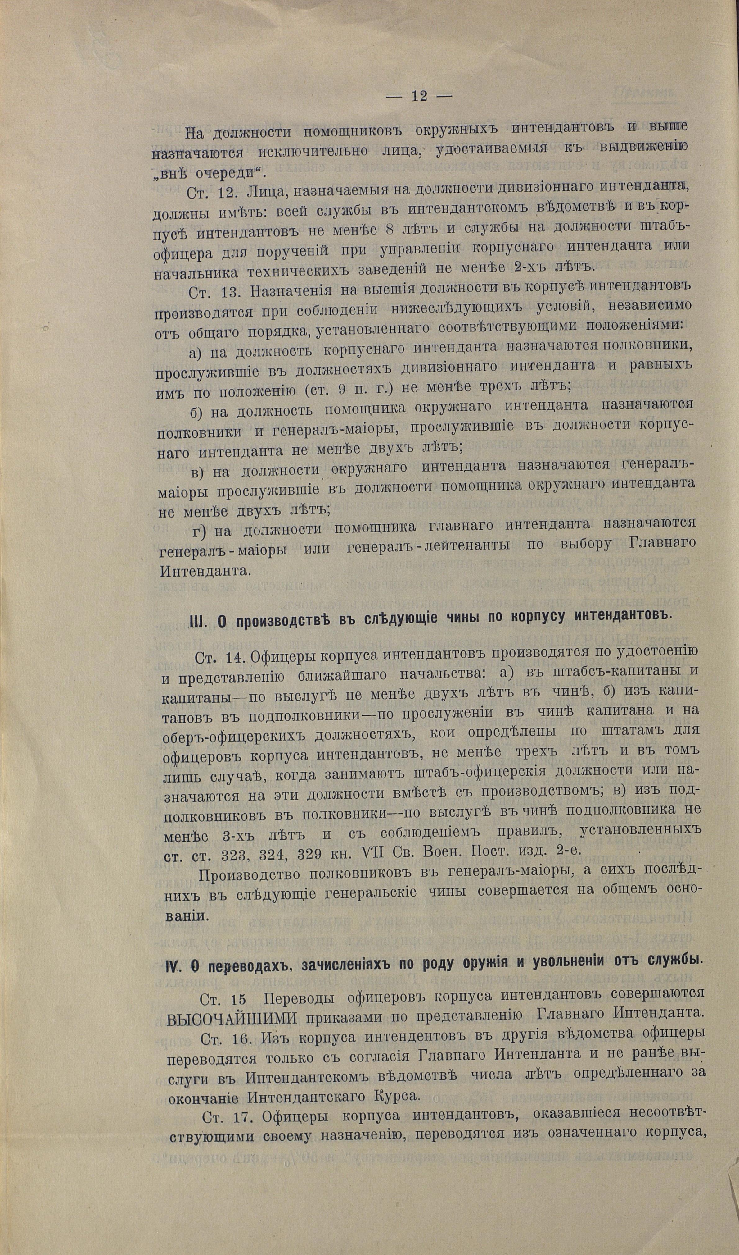 - замещение наиболее ответственных должностей в интендантском ведомстве.