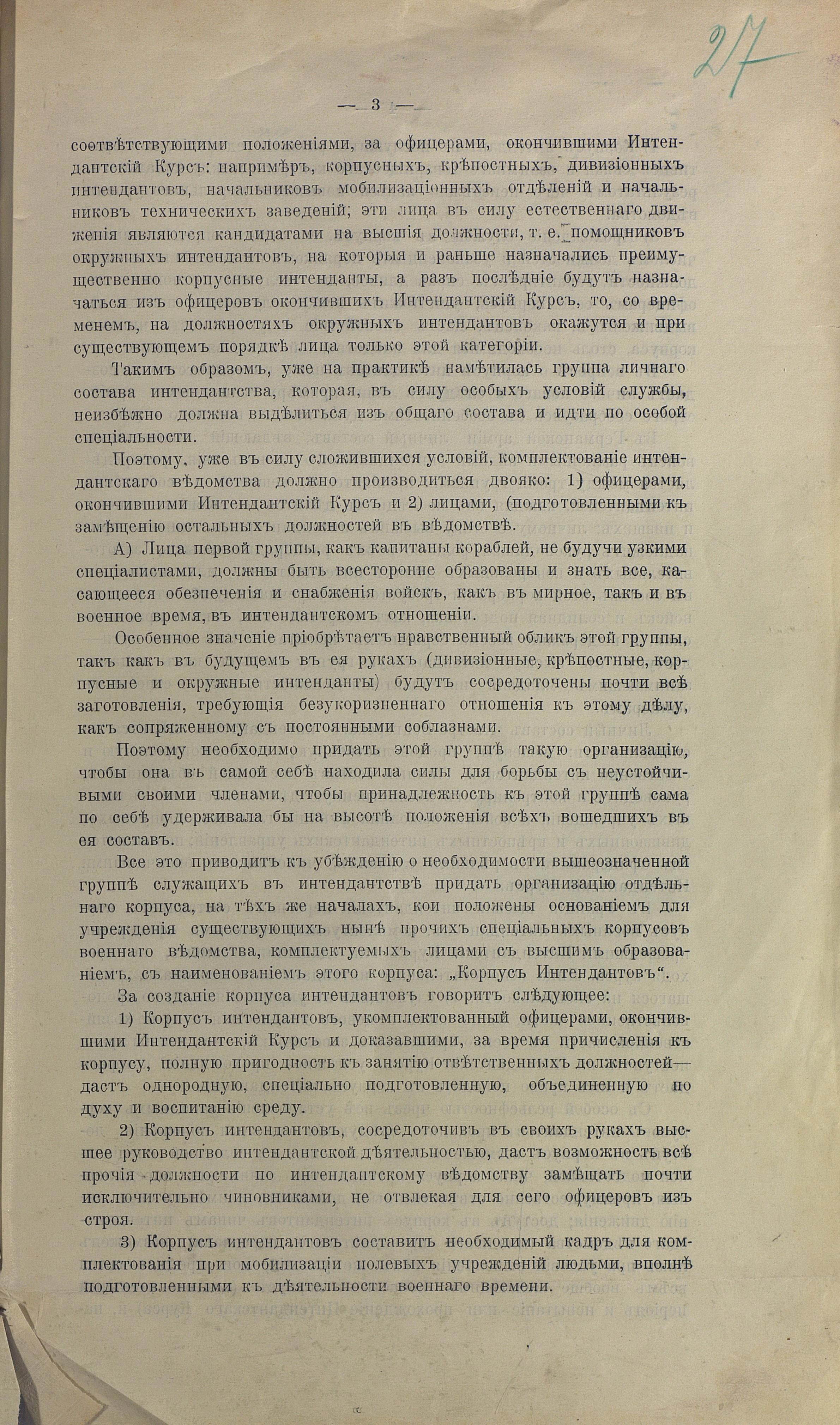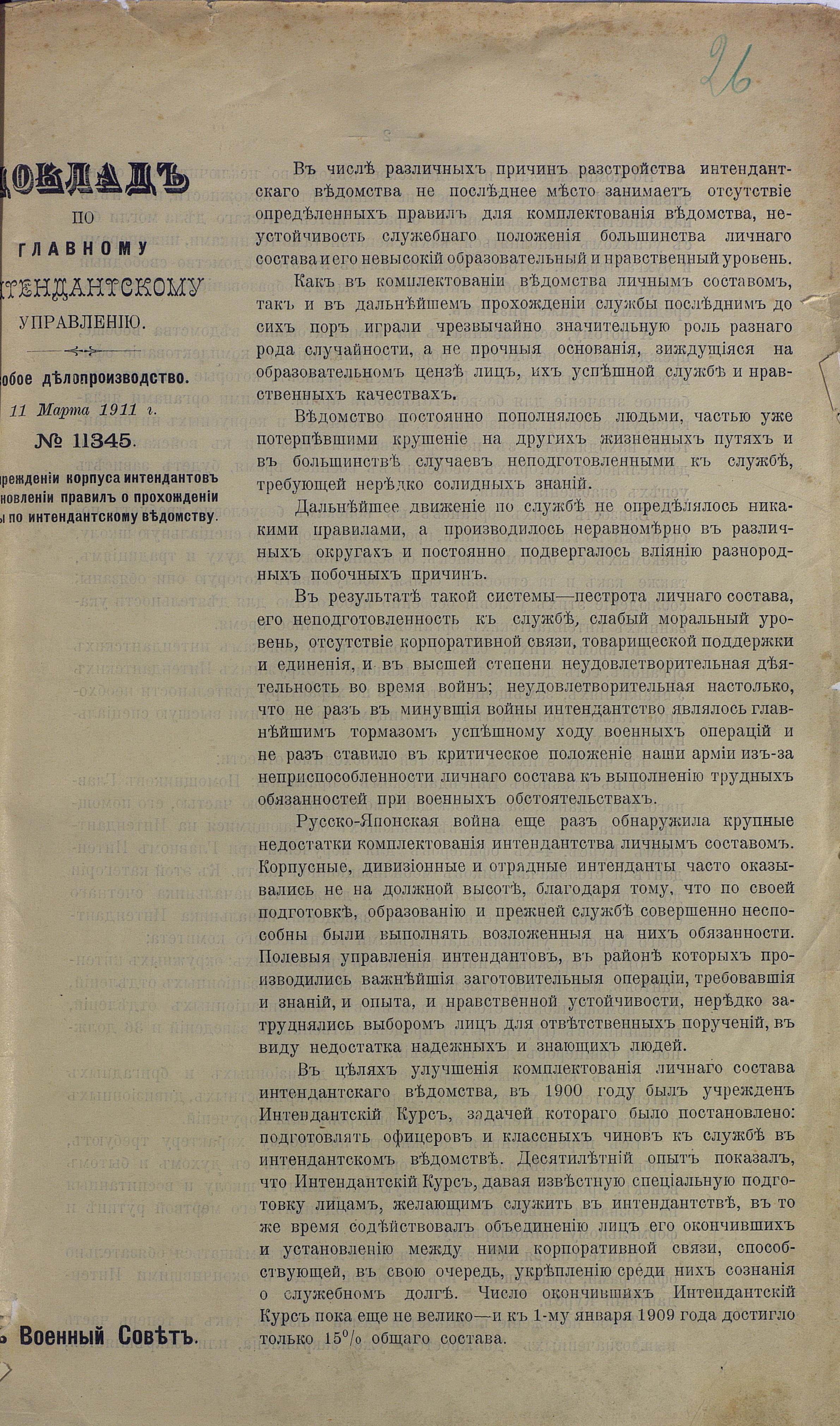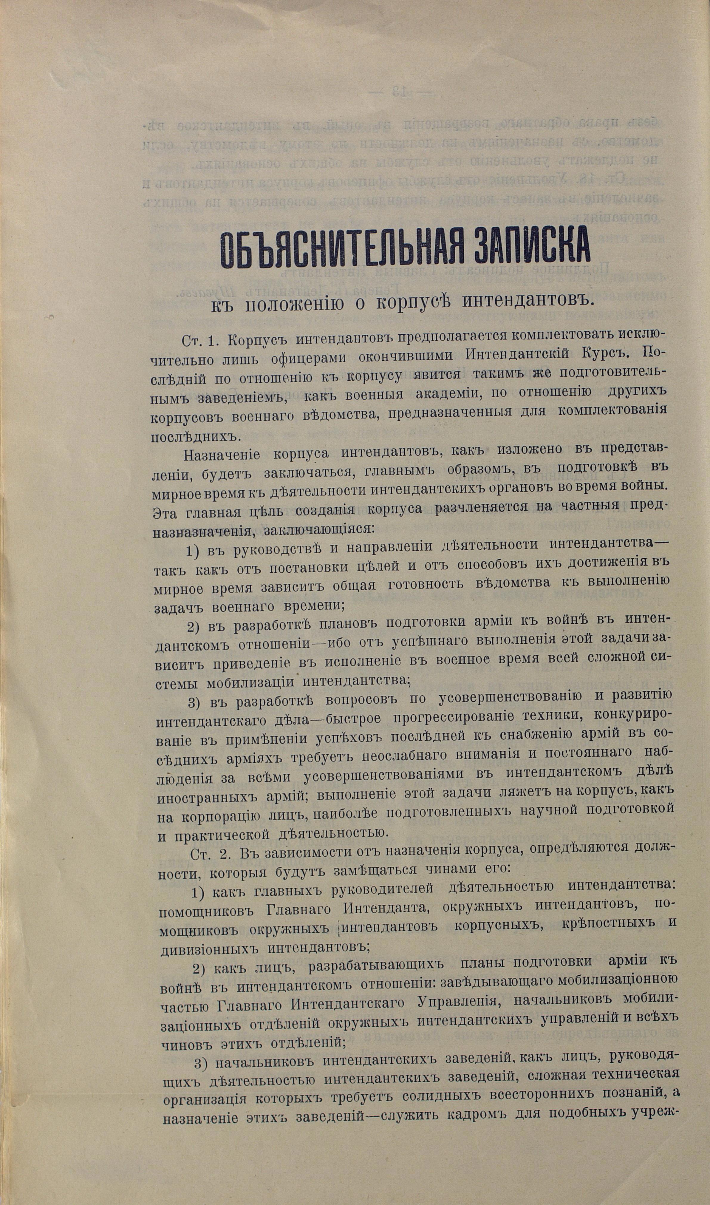 Об учреждении корпуса интендантов. Доклад 1911 года