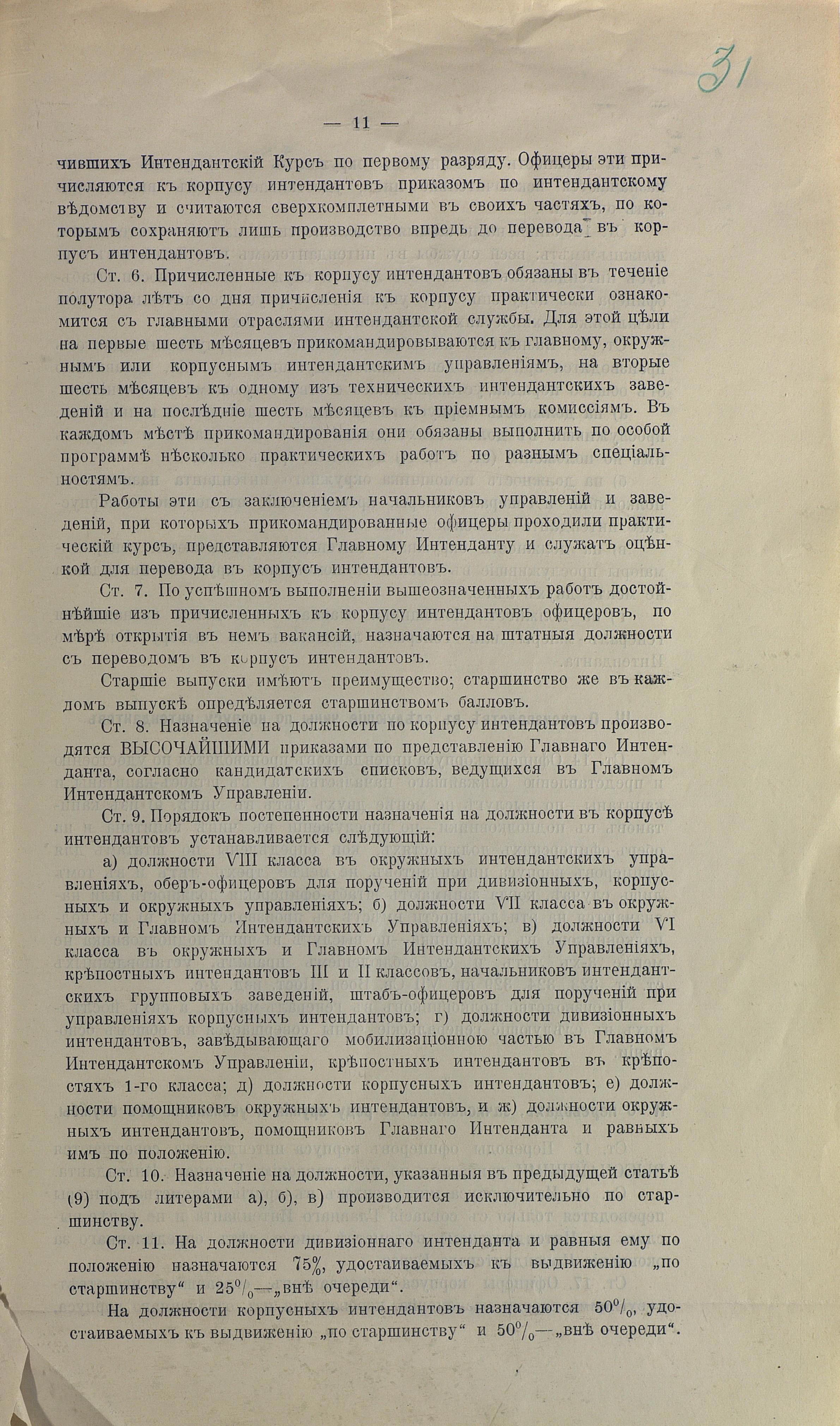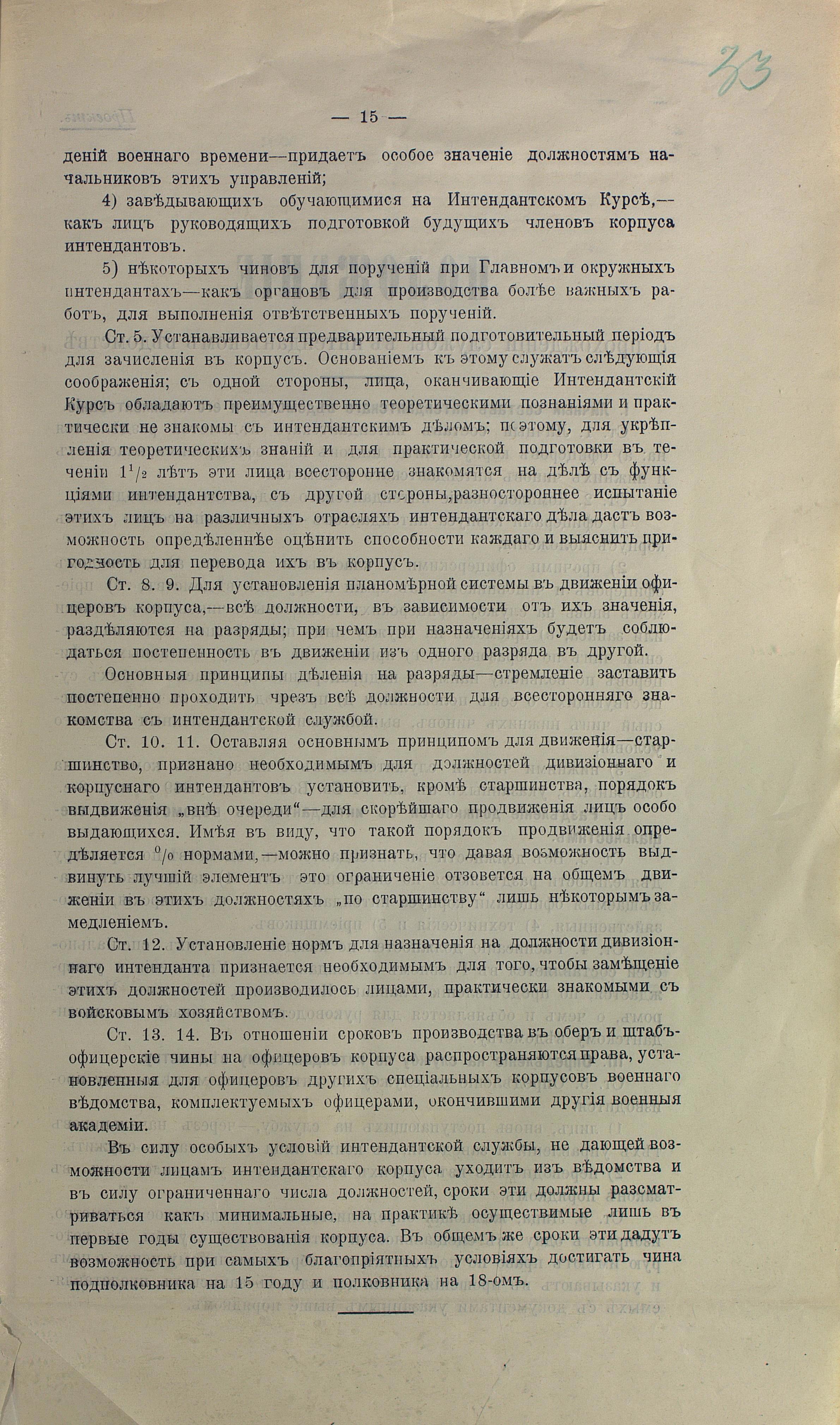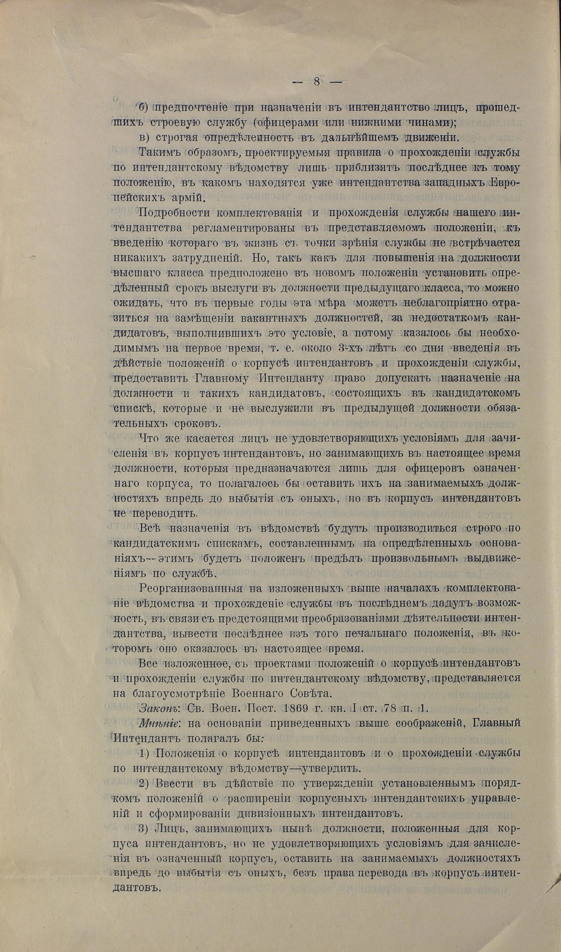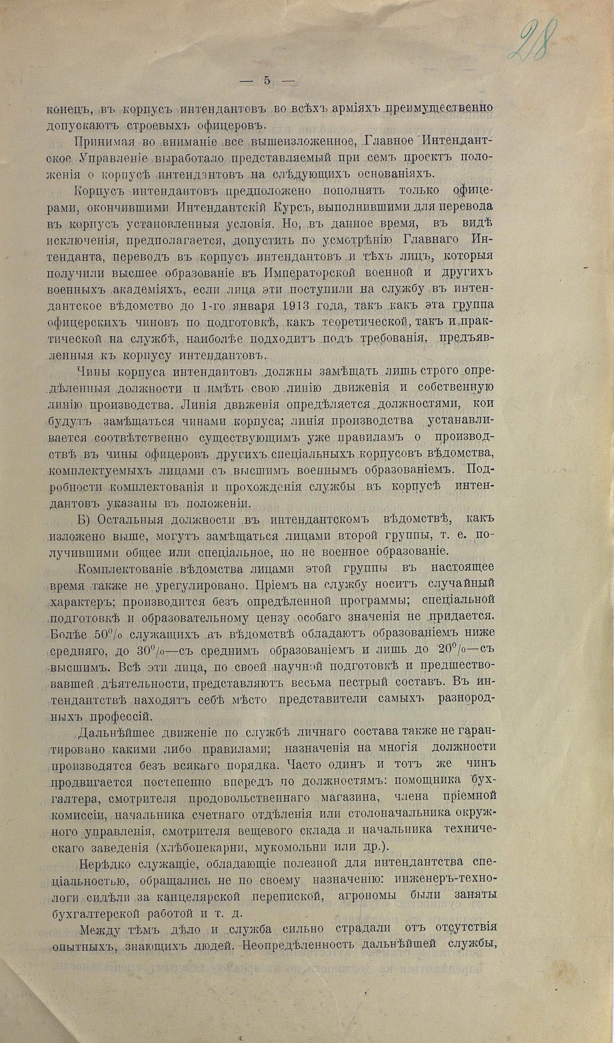 Об учреждении корпуса интендантов. Доклад 1911 года