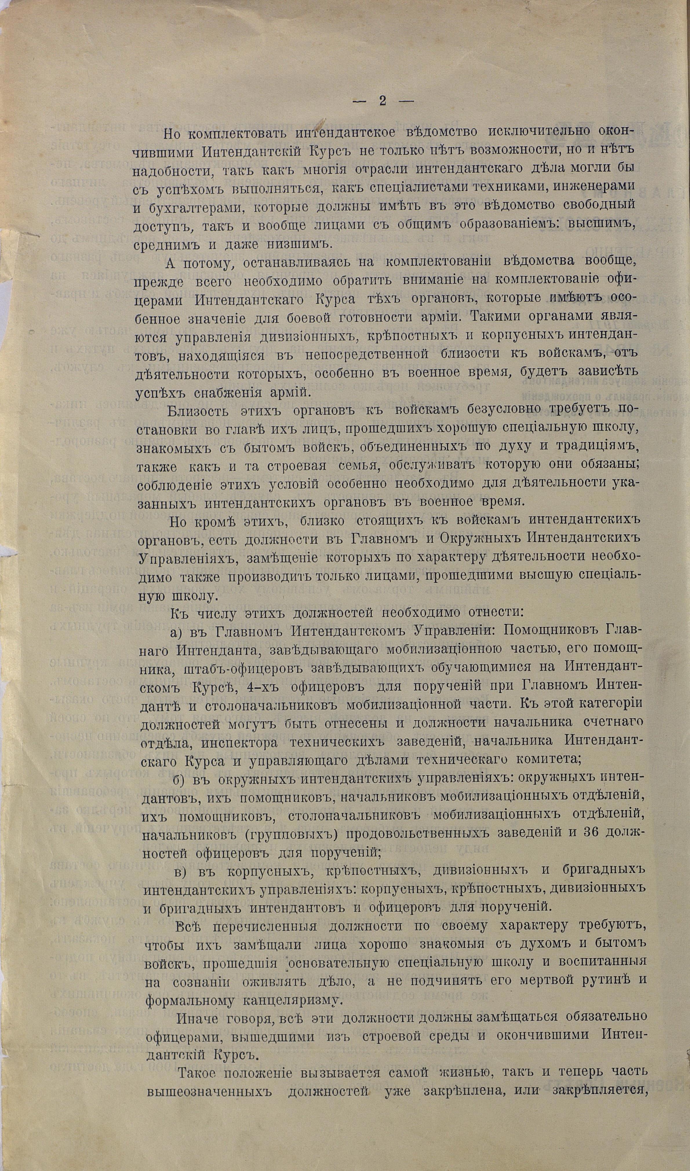 Так что же это такое, Интендантский корпус? Если исходить из текста доклада и приложенных к нему документов, Интендантский корпус Русской армии – это не установленное штатом или штатным расписанием объединение офицеров, получивших на Интендантском курсе высшее специальное образование занимающих должности, начиная от интенданта бригады, крепости, дивизии, корпуса, либо же выполняющих особые задачи в интендантских управлениях армий, фронтов, военных округов и в Главном Интендантском управлении.