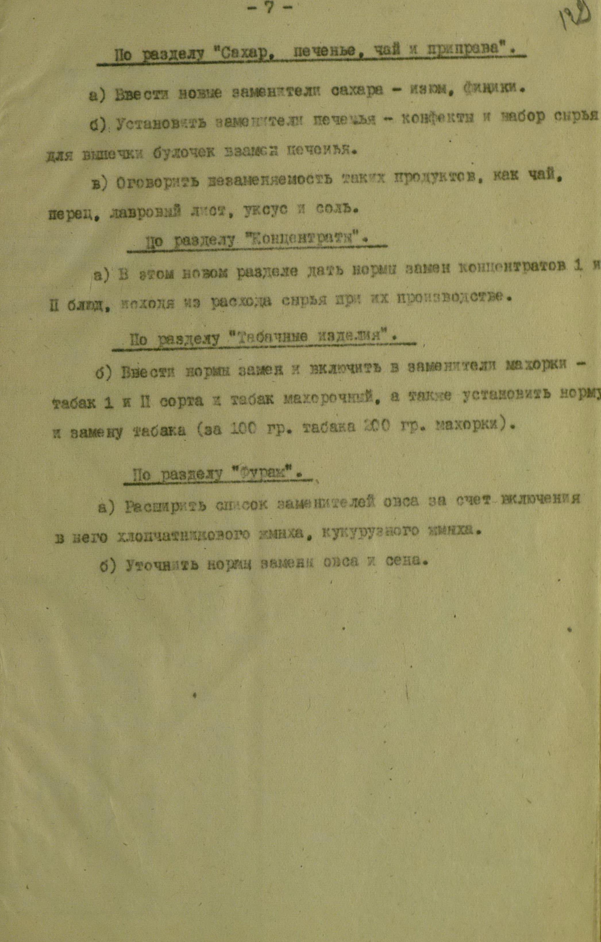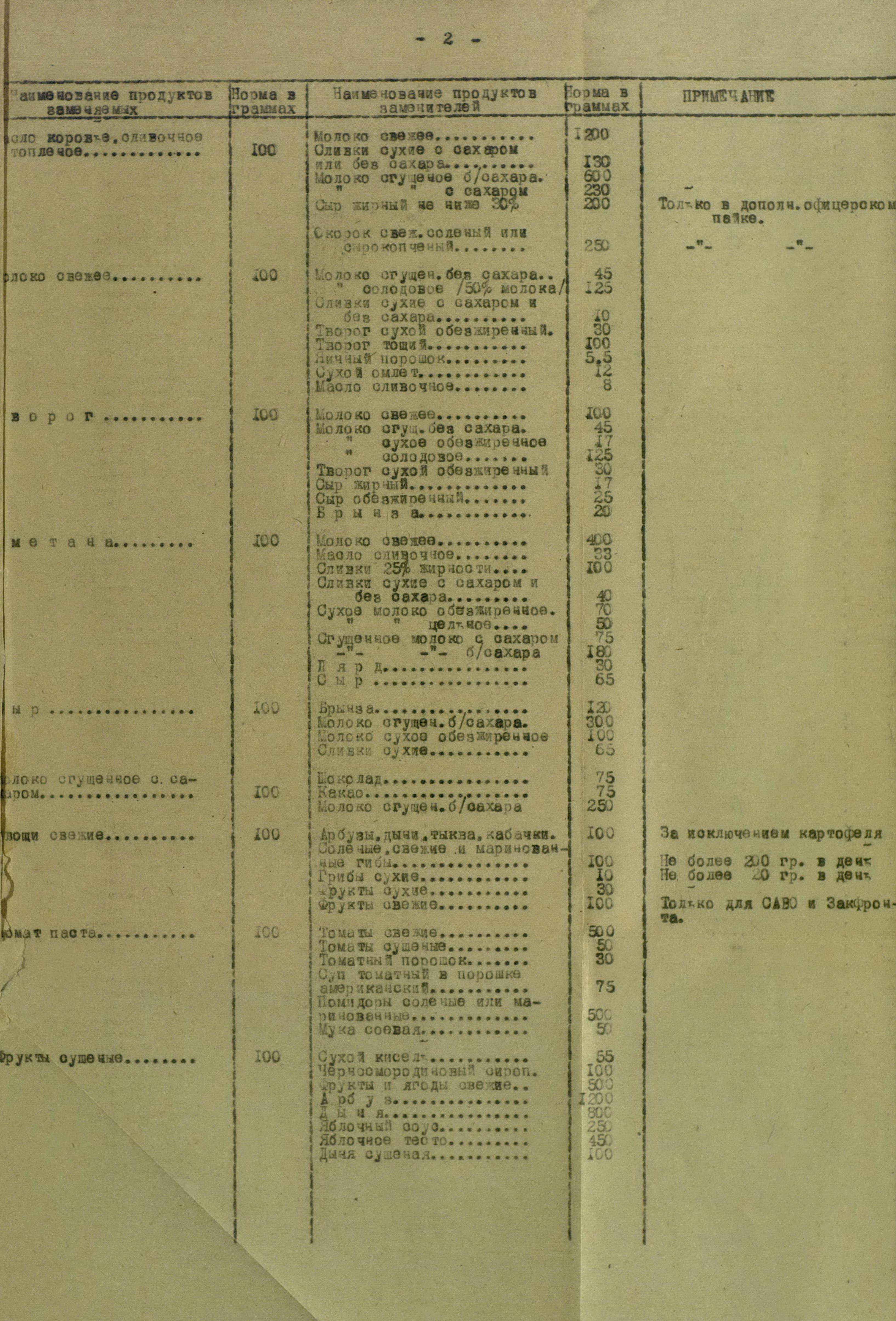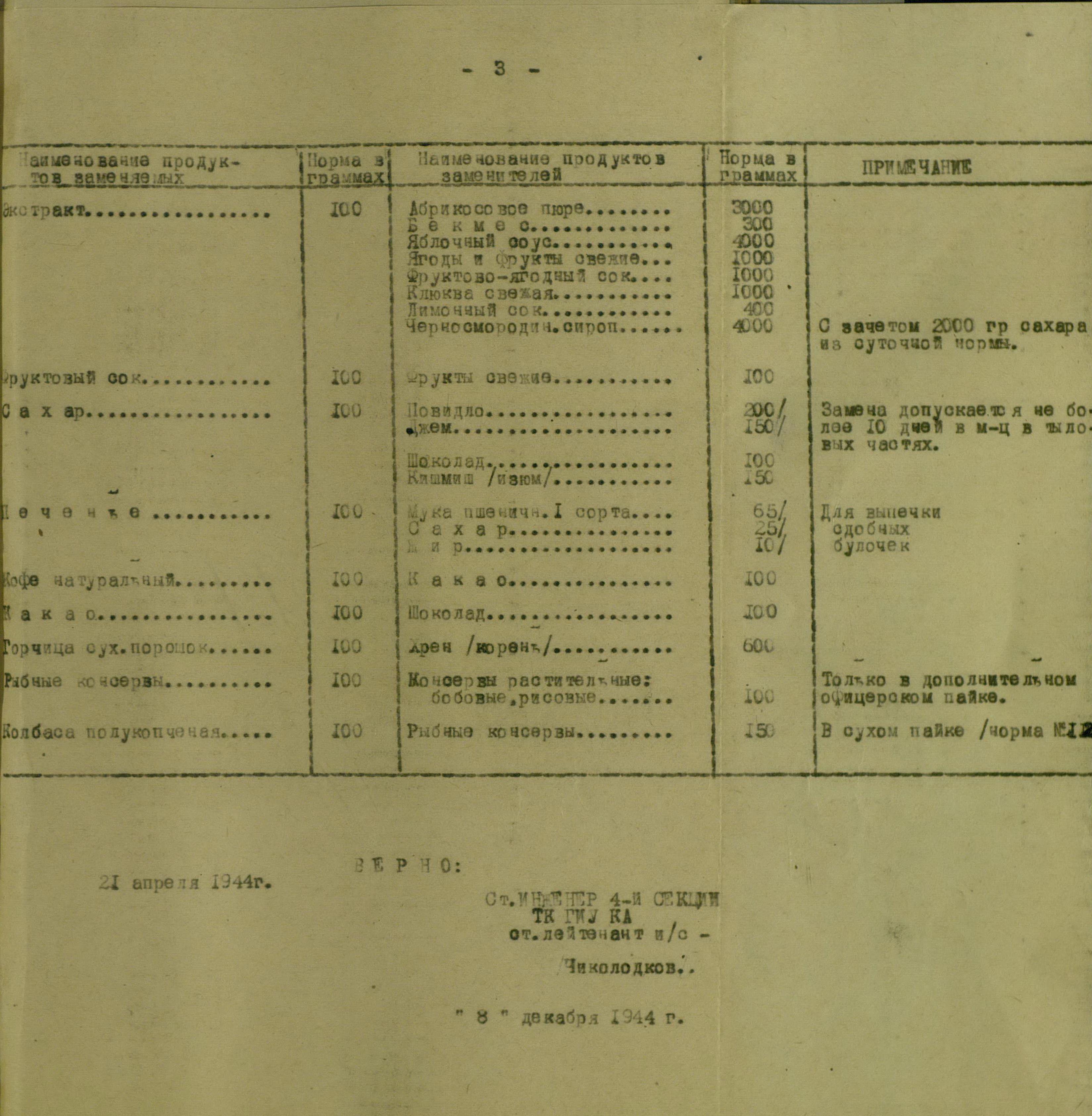 Замена продовольственных продуктов и фуража. Пищевые концентраты в РККА. Из отчёта Техкома