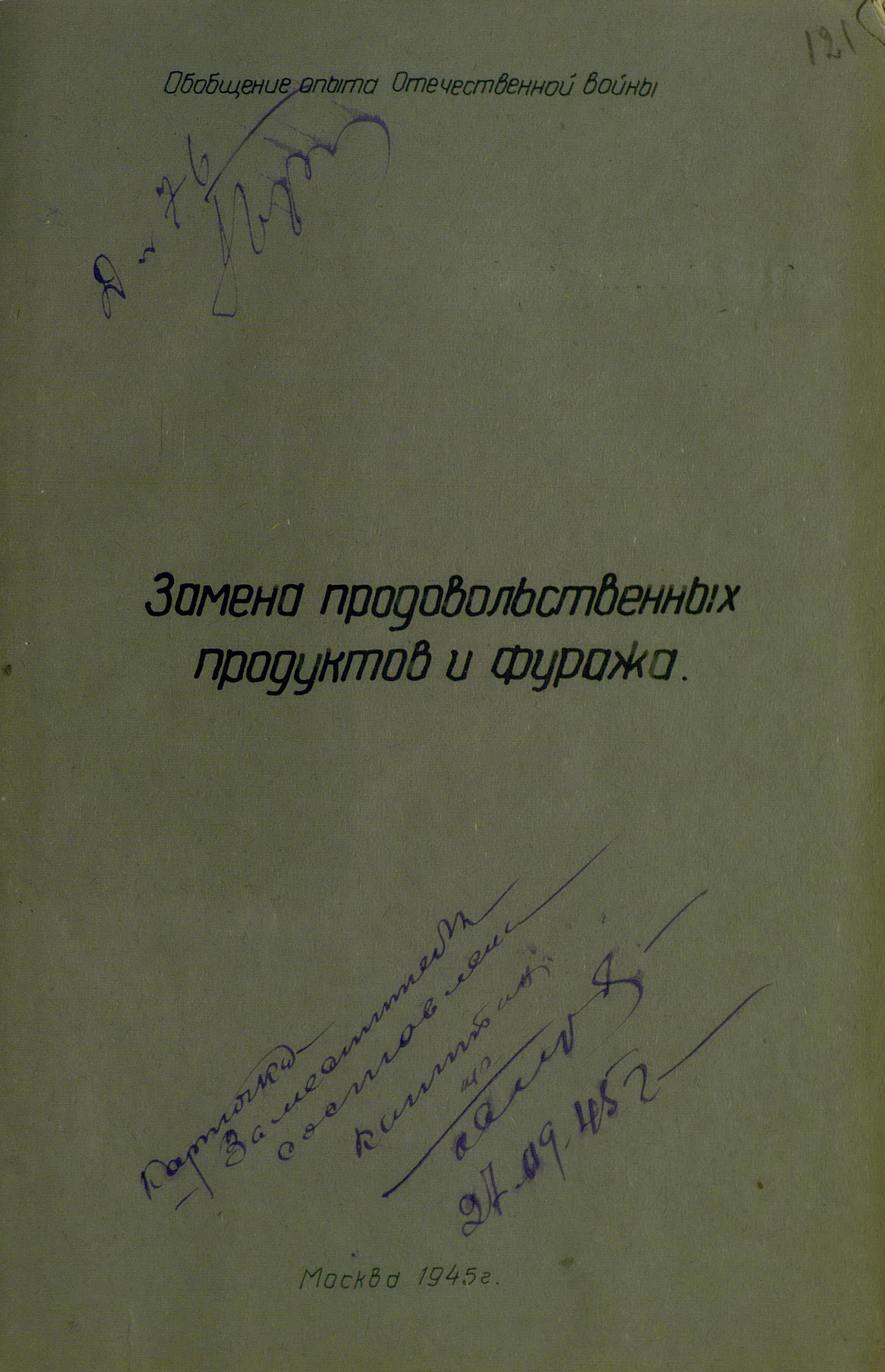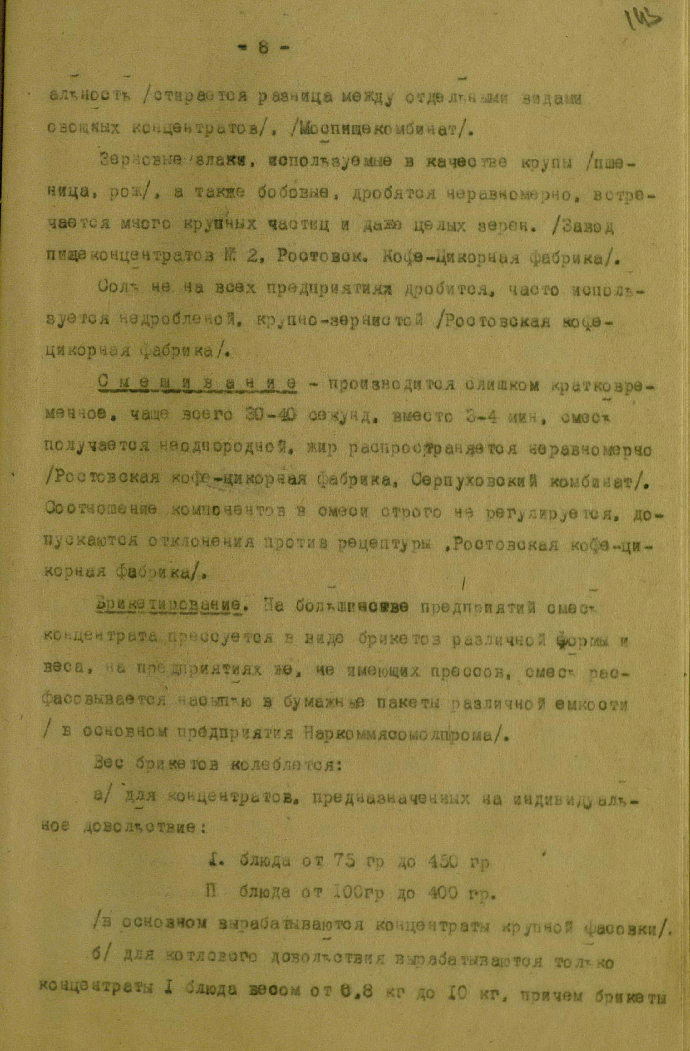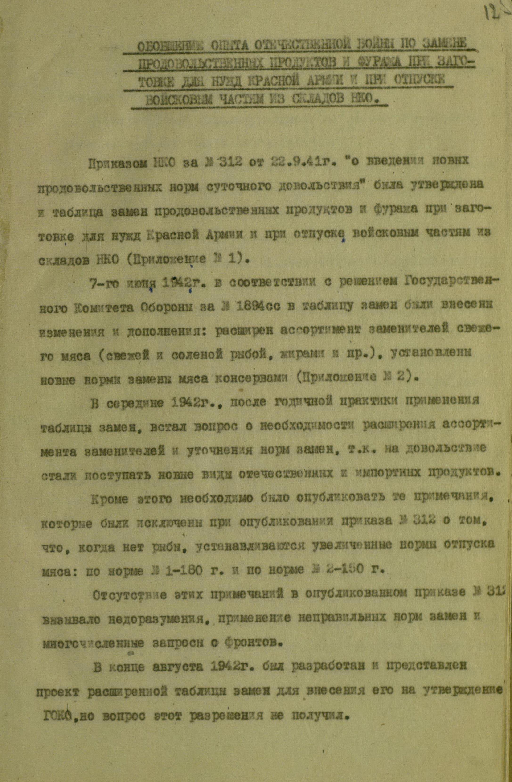 Замена продовольственных продуктов и фуража. Пищевые концентраты в РККА. Из отчёта Техкома