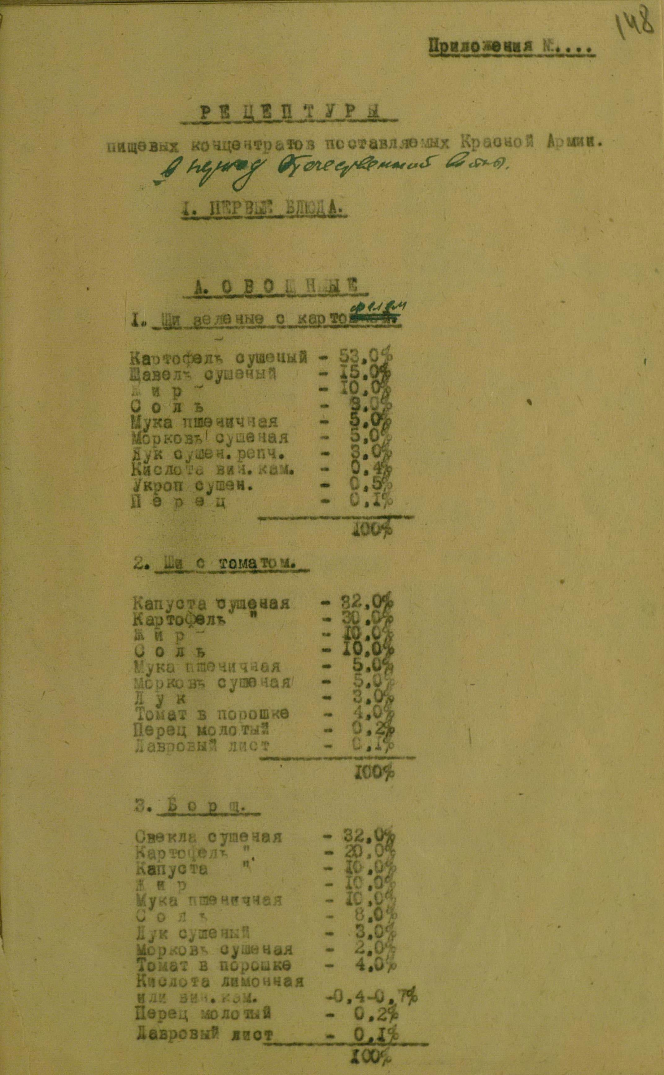 И дабы завершить публикацию материалов Техкома, обобщающих опыт Отечественной войны, предлагаю полистать ещё один раздел, раскрывающий тему применения пищевых концентратов. Конечно, у каждого из вас, уважаемые читатели, свои предпочтения, но самым интересным разделом мне показался с рецептурой пищевых концентратов, поставляемых Красной Армии.