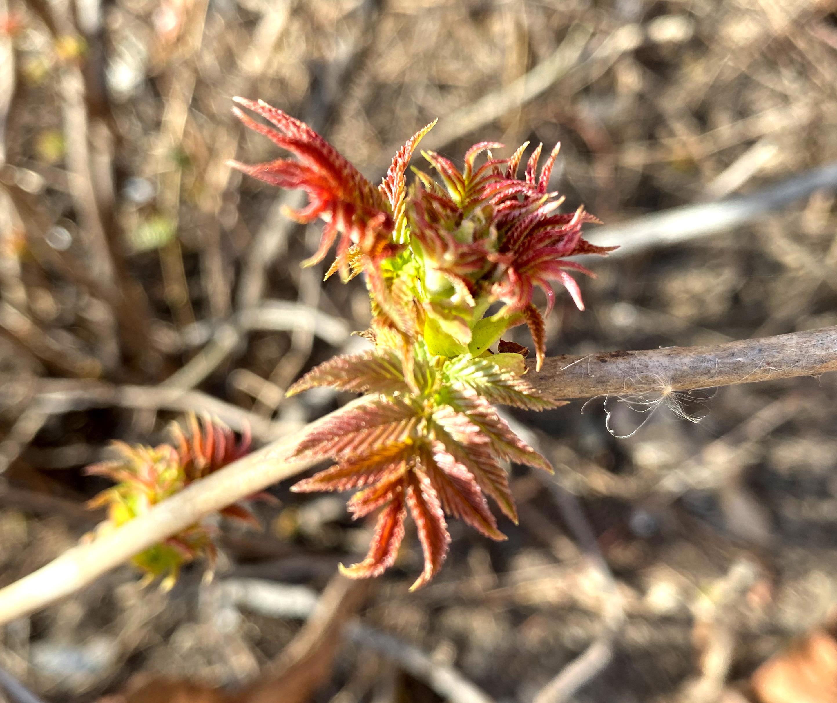 У нас зацвели первоцветы и на кустарниках распускаются листья.