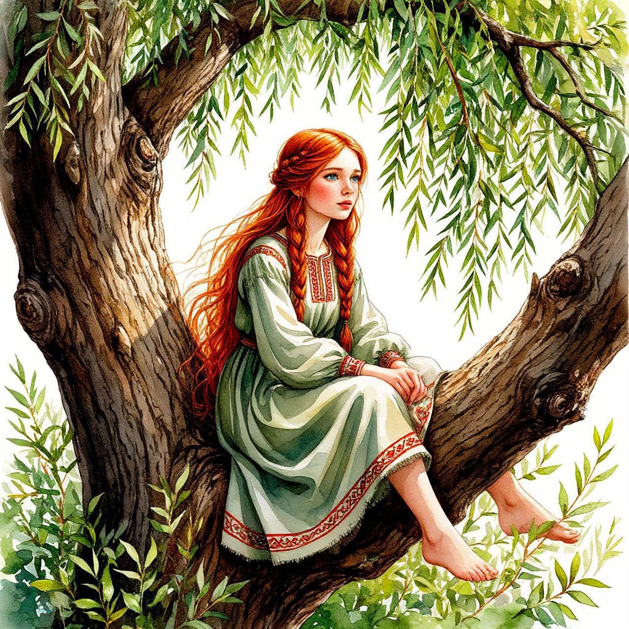 Она уютно устроилась на ветках одной из раскидистых старых ив, которые в изобилии росли вокруг терема. Спрятавшись в листве, колдунья наблюдала за суетой, творящейся возле дома.