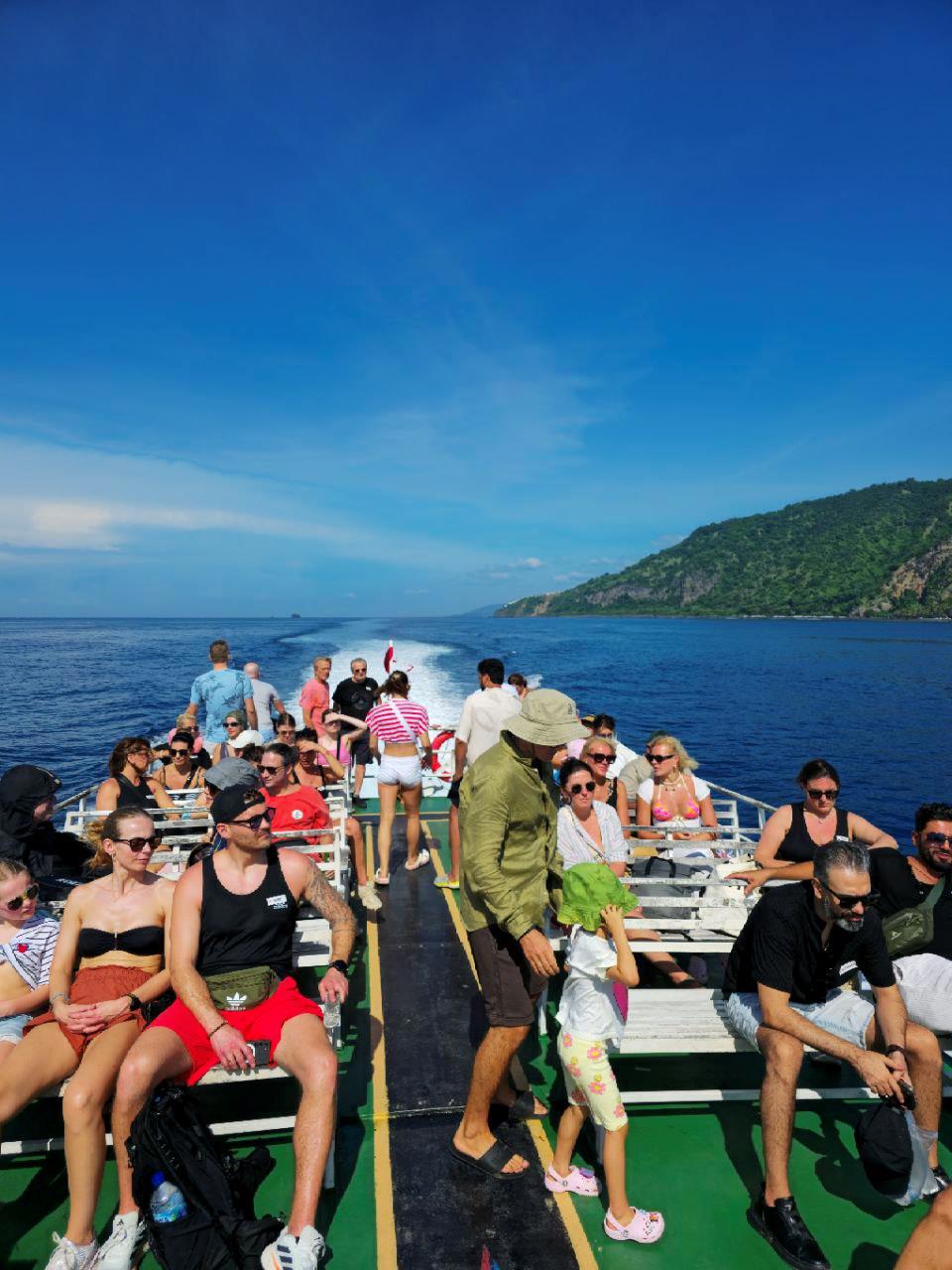 Заработали двигатели, корабль отчалил от стенки пирса. Почти сразу открыли выход на верхнею палубу. Народ потянулся наверх. Обстановка в салоне заметно разрядилась. Поднялся полюбопытствовать наверх. Удивлённо замер, треть палубу заставлена сиденьями, но нет никакого навеса. И все места заняты.