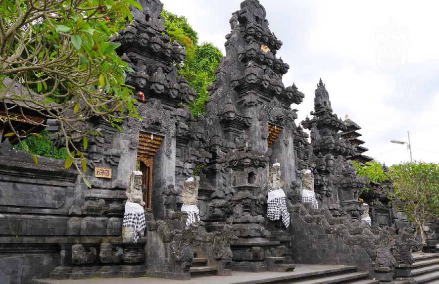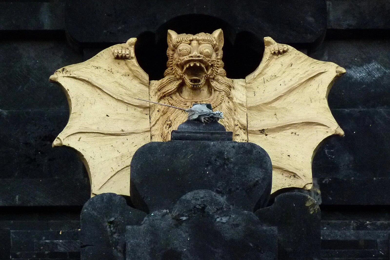 Между тем до регистрации на корабль осталось меньше часа, в то время как ехать тот же час. Всегда спокойный Саша, стал проявлять признаки нетерпения, сигналя никуда не спешащим балийским водителям. Выехали из городской застройки. Сбоку дороги часто мелькают небольшие горки чёрного песка с экскаваторами, на них местные используют лавовые пароды для стройки. Трасса разделена деревьями, по две полосы в каждую сторону. Крайняя левая заполнена потоком байков, периодически разбавляемая маневрирующими из правого ряда машинами. Местами после вчерашнего ливня через дорогу перетекает поток воды, миновали большой мост, потом другой. С некоторым напрягом посматриваю на часы, утешая себя мыслью, если что, то и здесь не плохо. Подумаешь, придётся переждать Ньепи — балийский «день тишины». ( https://ru.wikipedia.org/wiki/Ньепи). Ирма обращает внимание на храм летучей мыши «Гоа Лавах», пока реагировал, проехали. Кадры из интернета.