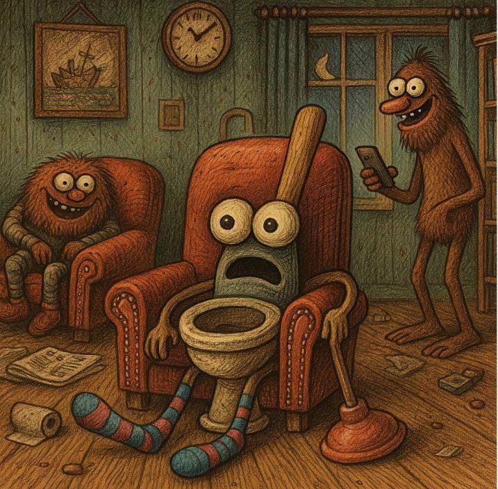 О, эта палка заслуживает отдельного поста! Когда наш унитаз решил бастовать и смывать только по праздникам, на помощь пришла она — великая и ужасная Попихальная Палка. Это не просто инструмент сантехники, это мультифункциональное устройство! Помимо своей основной функции (деликатного убеждения содержимого унитаза отправиться в путешествие), она отлично справляется с ролью экспресс-выпроваживателя нежеланных гостей. Одно упоминание Попихальной Палки — и вуаля, гости резко вспоминают о неотложных делах дома.