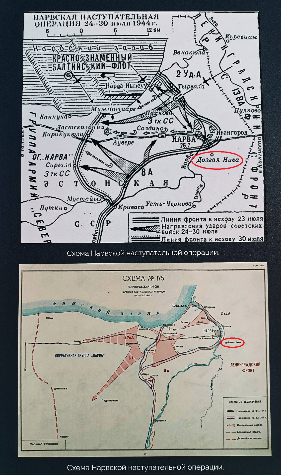 В своё время как раз название привлекло моё внимание, даже понравилось. А относительно недавно — 23 февраля — я узнала, что Долгая Нива — это название ныне не существующей затопленной деревни. Думаю, деревня была немаленькой, ибо она фигурирует на военных картах Нарвской наступательной операции Ленинградского фронта в 1944 году: