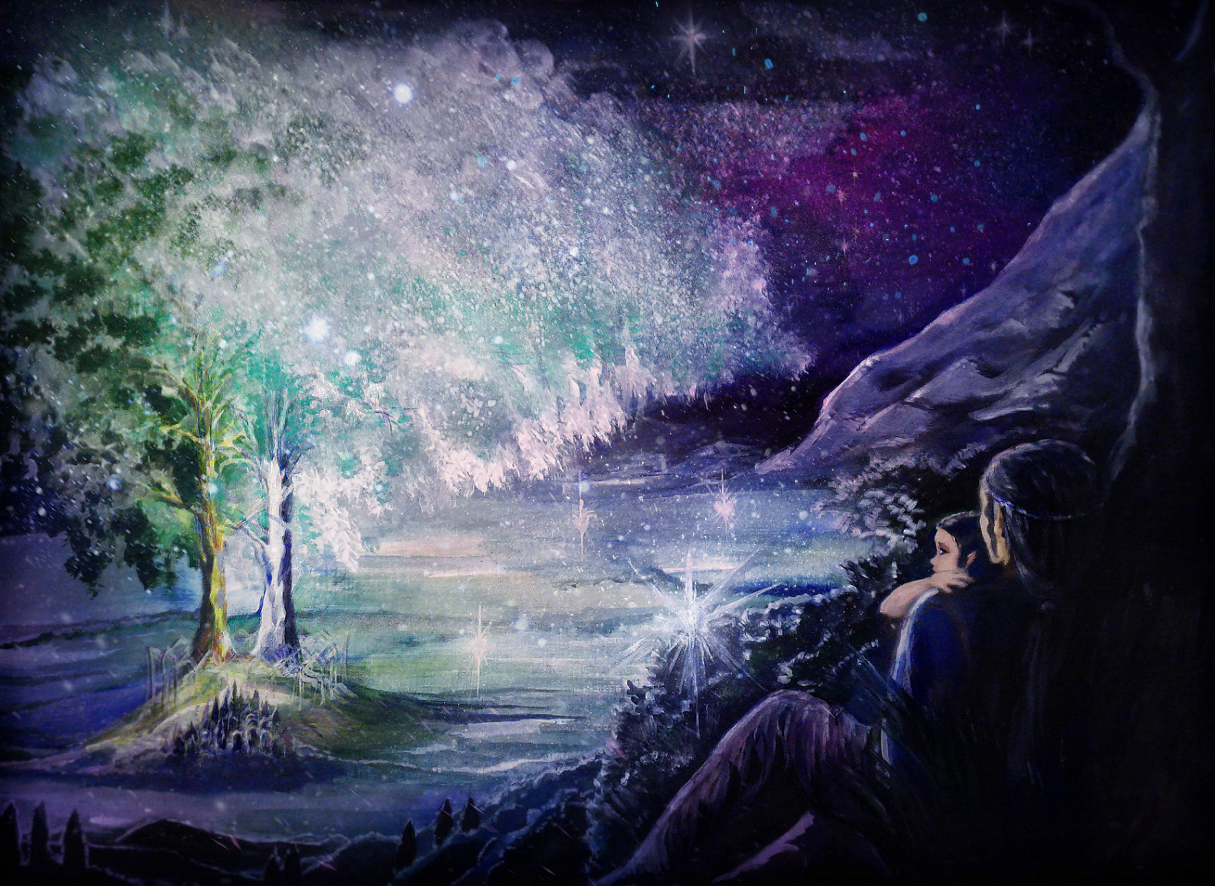 Автор: FeanaroИллюстрация к сказкам - гуашь, лист А3. Долго думал, как передать свет Древ, чтобы освещение соответствовало законам физики)