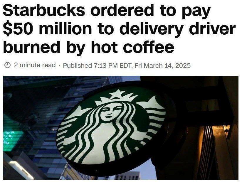 Суд в Калифорнии постановил выплатить 50 миллионов долларов компенсации курьеру, который обжёг пах горячим кофе из-за ненадёжно закрытого стакана! Схема обогащения понятна? А для любителей животных есть другая схема!