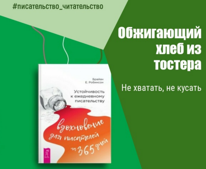 Открываю книгу Брайна Робинсона "Устойчивость к ежедневному писательству" и вижу шикарную метафору и совет - не пытайтесь откусить обжигающий хлеб из тостера.