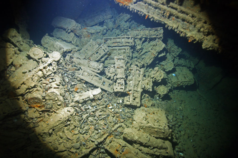 При осмотре трюмов судна были обнаружены 5 88-мм зенитных орудий,8 стволов артиллерийских орудий ( из них 6 стволов калибра 105 мм и 2 ствола калибра 120 мм ),артиллерийские снаряды калибра 105 мм и 120 мм,минометные мины калибра 81 мм,легковой автомобиль,"микроавтобус" и мотоцикл.(с)